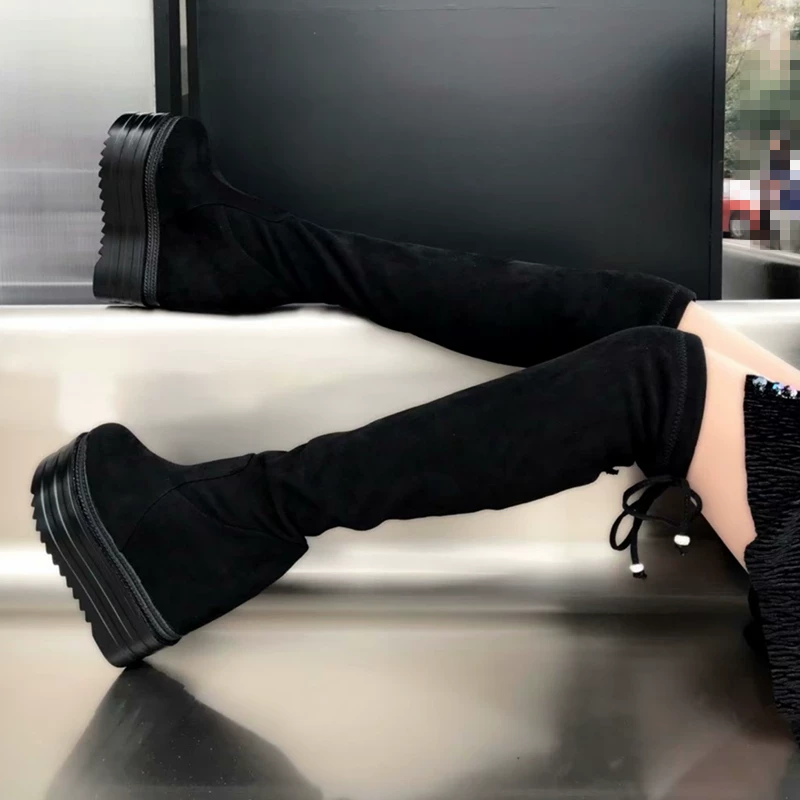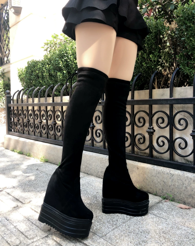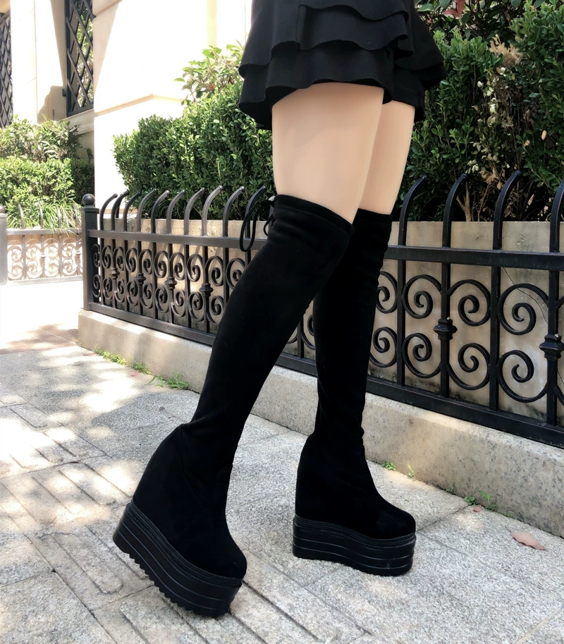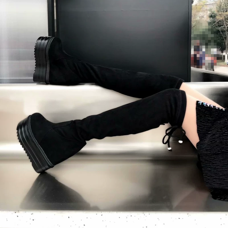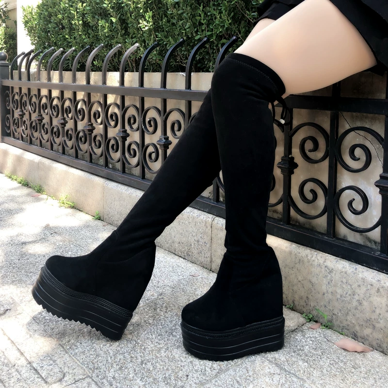 Сапоги-мартинсы на очень высокой танкетке, замшевые, 2019