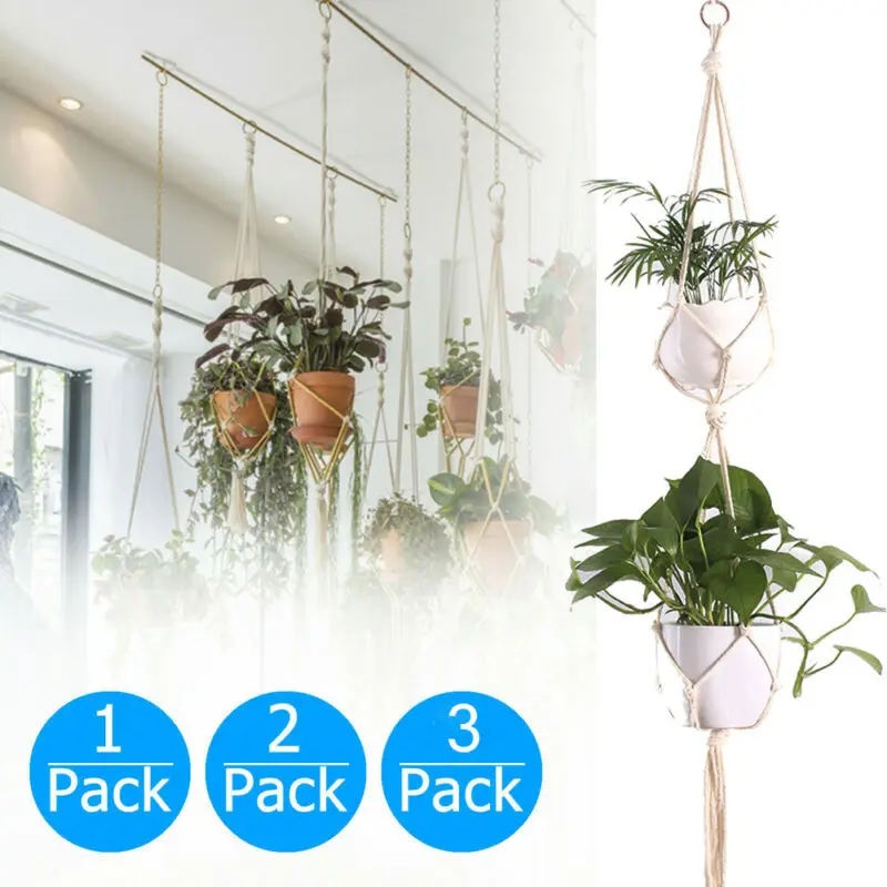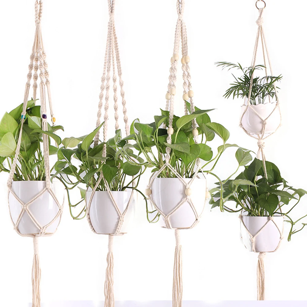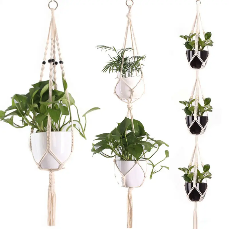 Держатель для горшка ручной работы, вертикальная подвесная корзина для горшка, хлопковая веревка, ручная работа, горшок для балкона, подвесная веревка для помещений и улицы