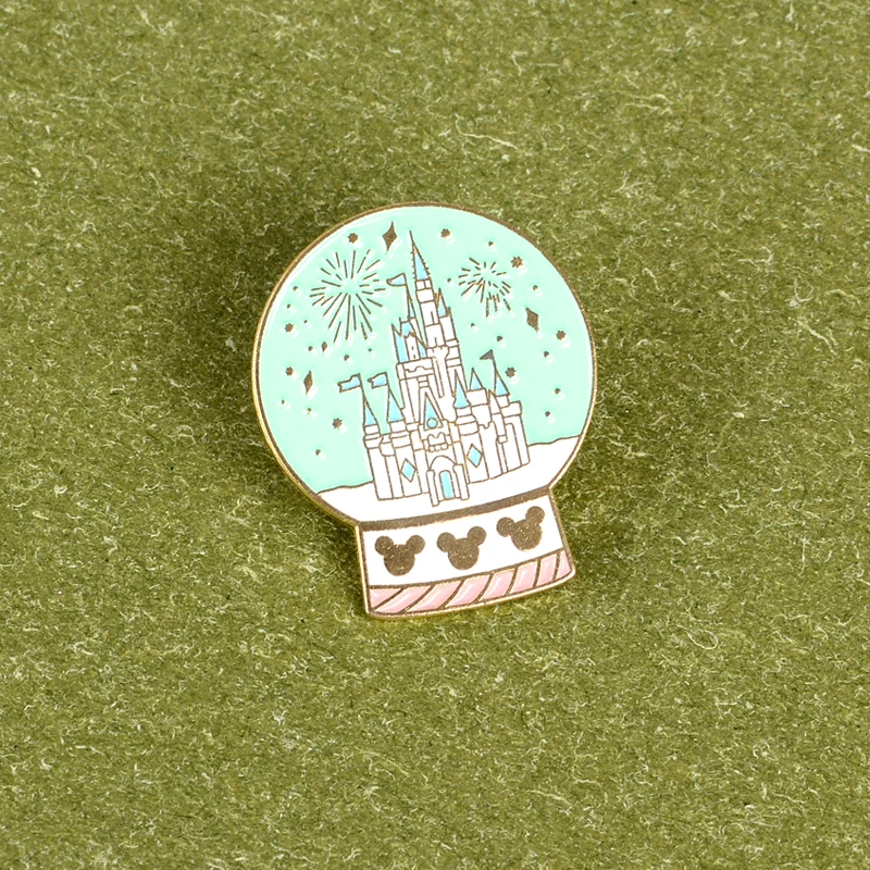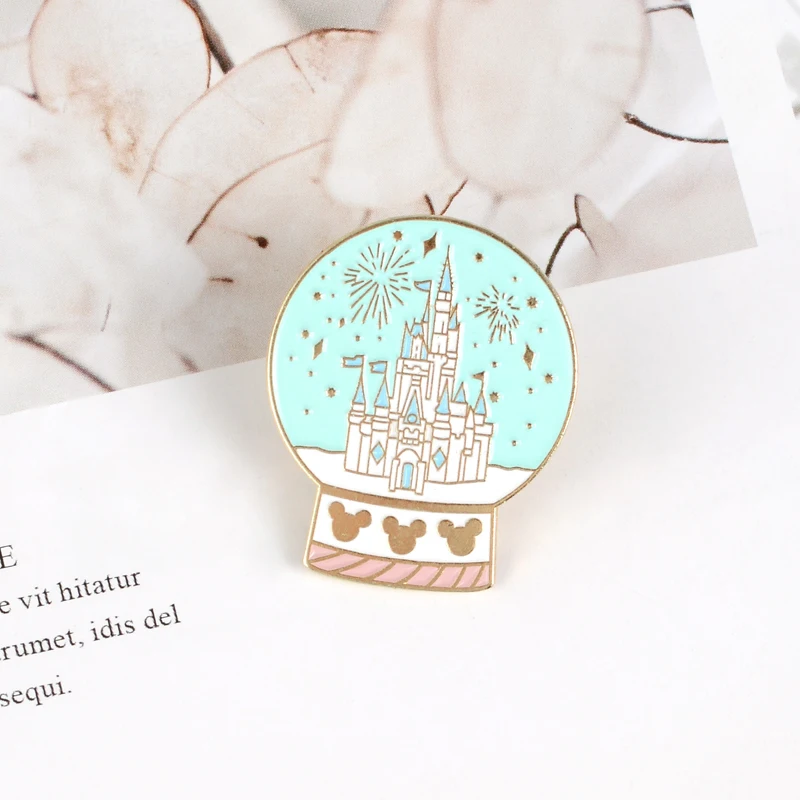 Эмалированная булавка в виде замка мечты с хрустальным шариком, сказочный значок с фейерверком, брошь на лацкан, для одежды, рюкзака, сумки, булавка, мультяшное ювелирное изделие, подарок для девушки