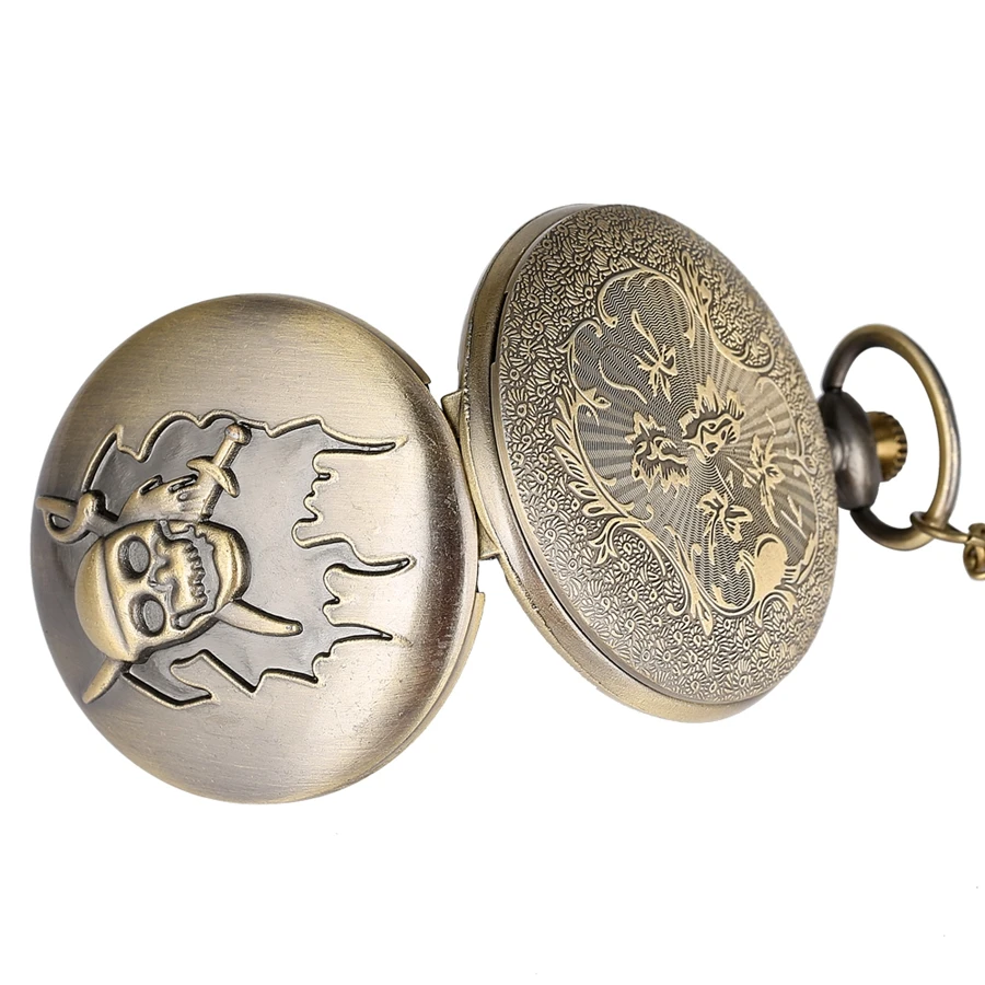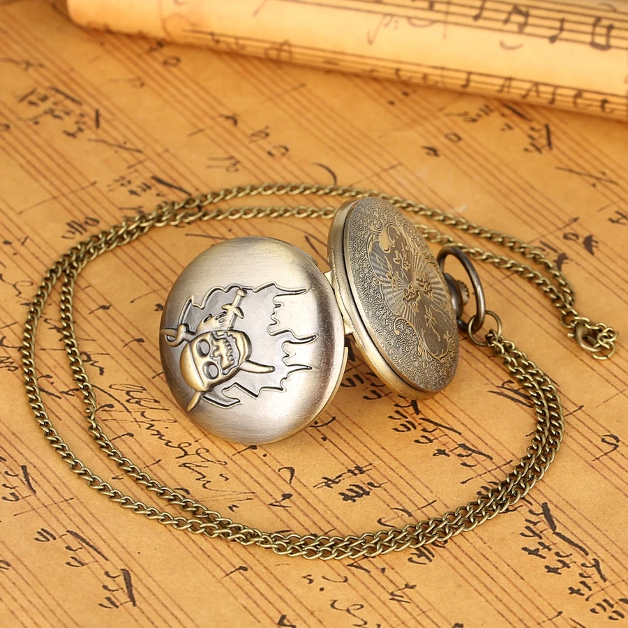 Бронзовый Пиратский череп крест меч кварцевые карманные часы ожерелье подвеска цепочка брелок часы Подарки для детей мужчин женщин Reloj de madera