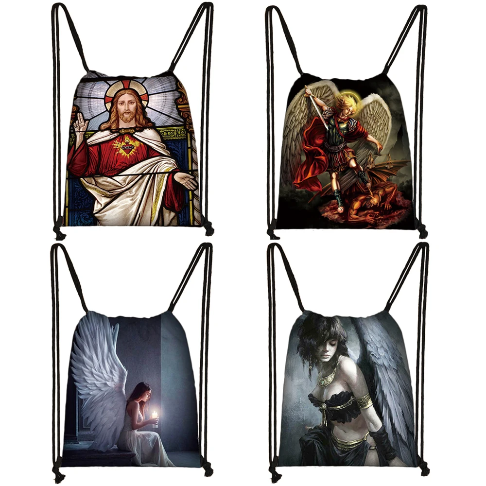Винтажная сумка с принтом Иисусаангела, рюкзак для женщин и мужчин, модная сумка для хранения, рюкзак для мальчиков и девочек-подростков, Подарочный рюкзак
