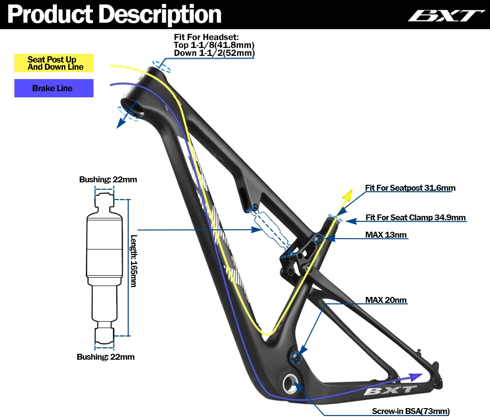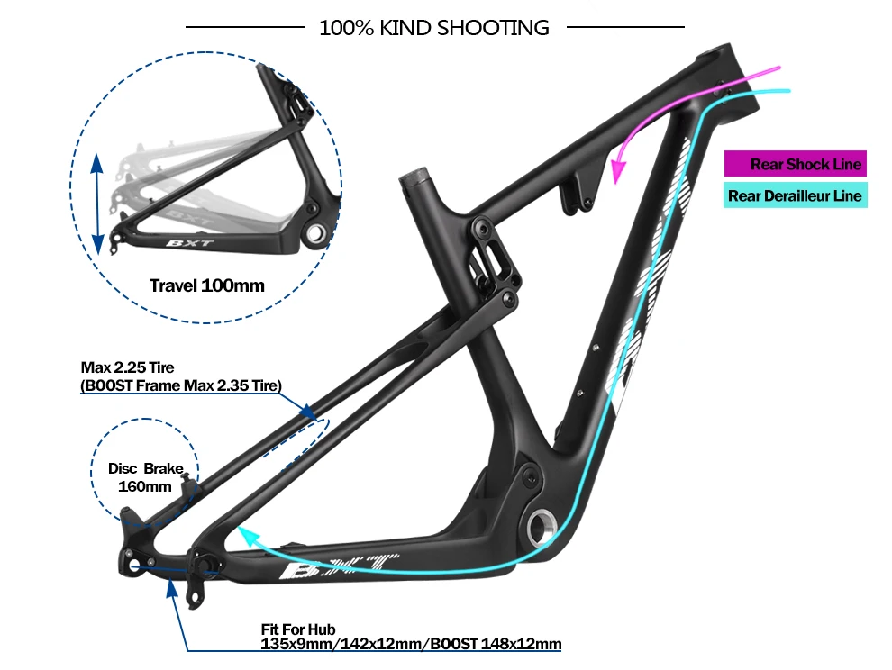BXT 29er углеродная mtb рама полный комплект велосипедной Подвески MTB рама максимальный размер шин 2,3 "2,35" boost углеродная подвеска детали рамы велосипеда