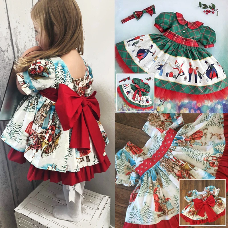 Рождественское рождественское платье для маленьких девочек; Вечерние платья с изображением Санта-Клауса и От 1 до 6 лет с цветочным принтом