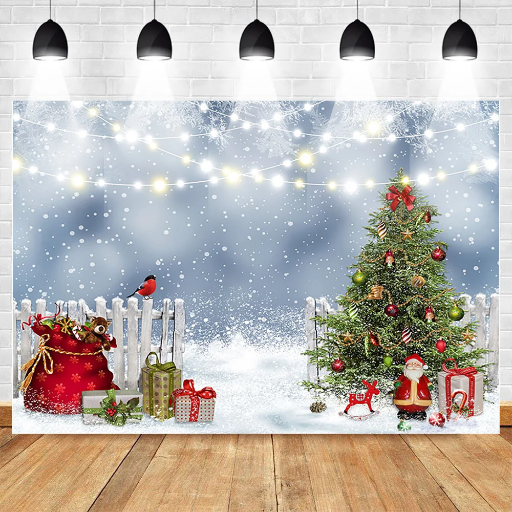 Рождественский фон зимние блестящие гирлянды огни Рождественская елка фон Санта Клаус Подарки Игрушка Снежинка фотография фотосессия