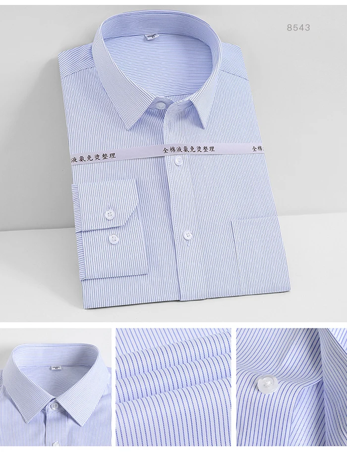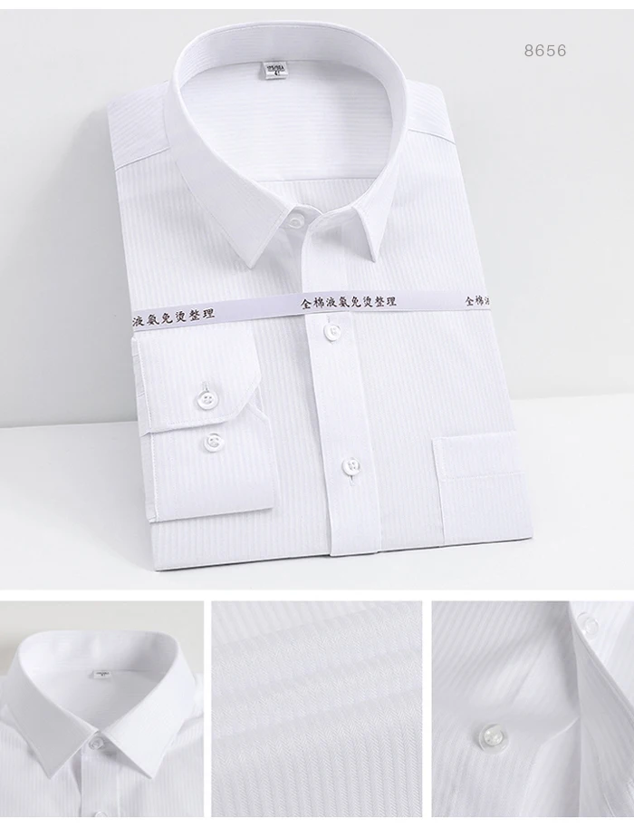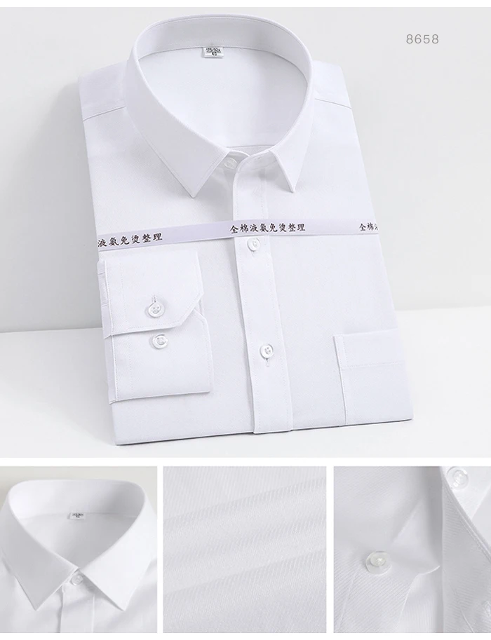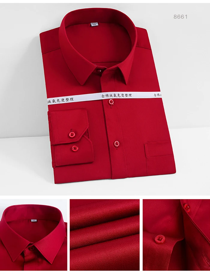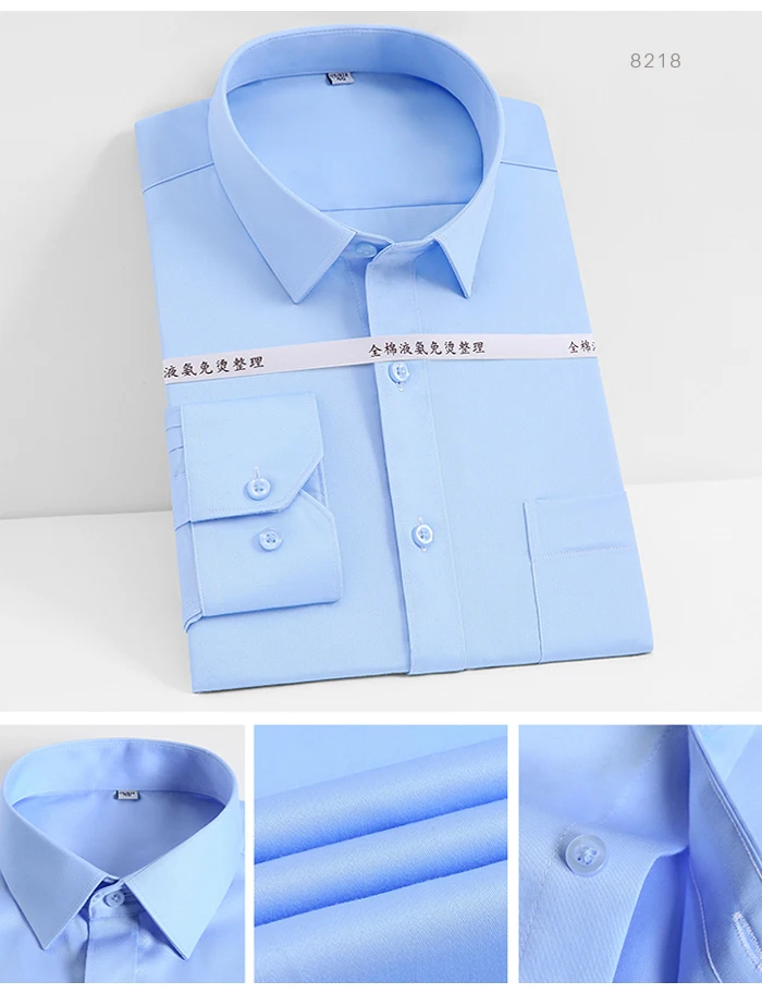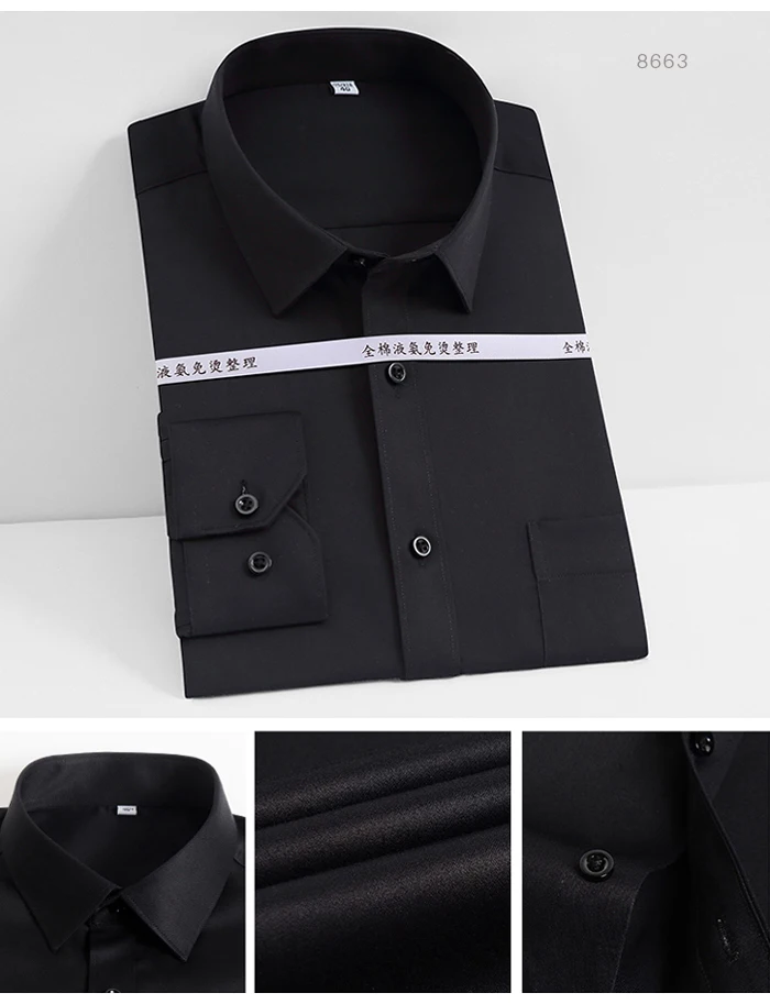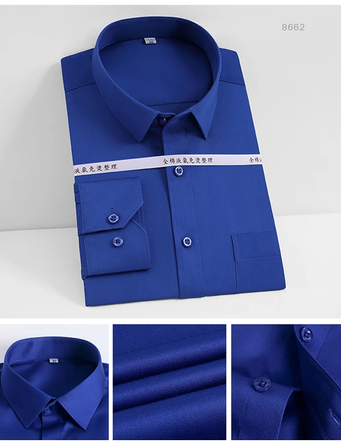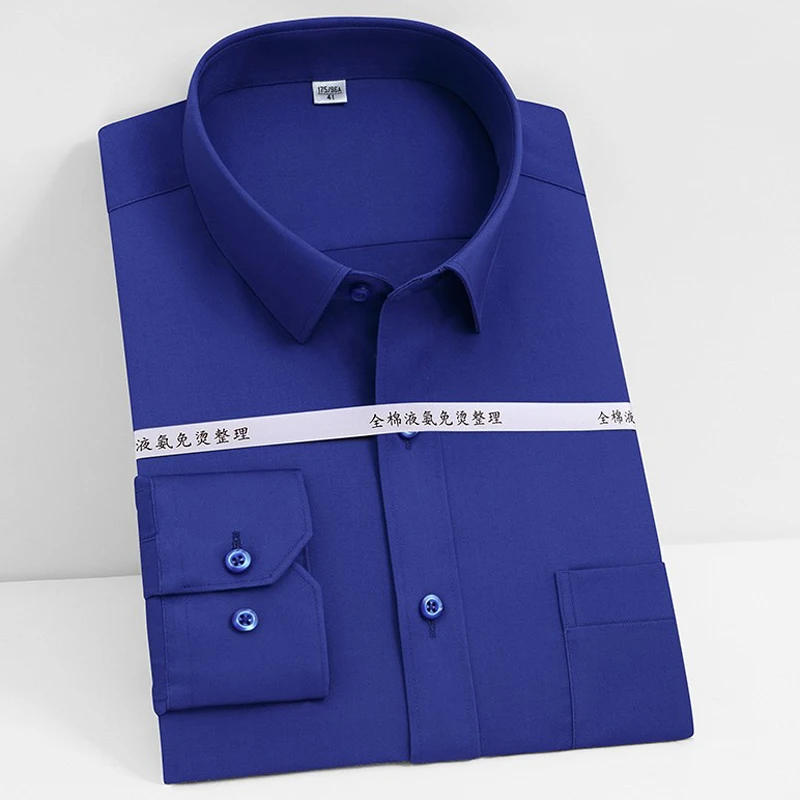 Мужская хлопковая рубашка, Классическая однотонная деловая рубашка для работы, с одним накладным карманом, длинными рукавами, не требует глажки