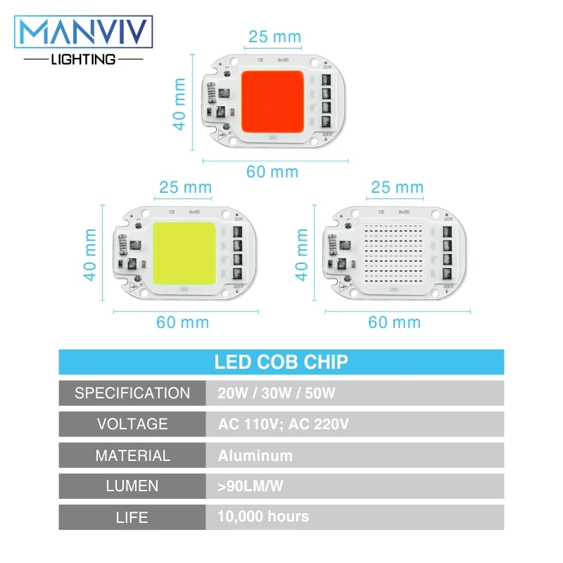 Светодиодный чип COB для сделай сам, цветной чип Smart IC для точесветильник щения, теплый и холодный белый свет, 20 Вт, 30 Вт, 50 Вт, 110 В, 220 В