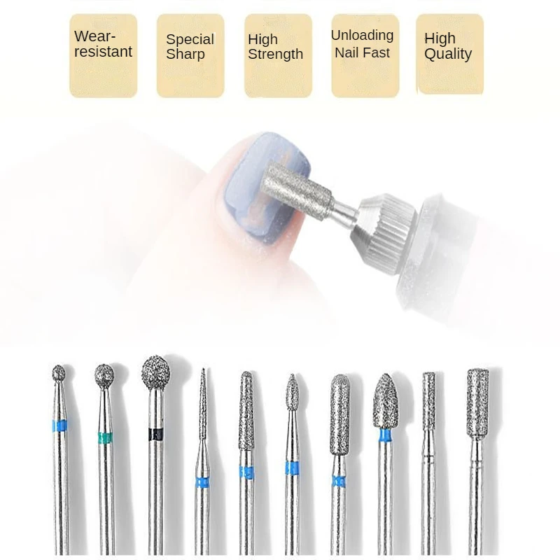 Алмазные фрезы для маникюра, набор из 10 твердосплавных насадок для маникюра, оборудование, инструменты