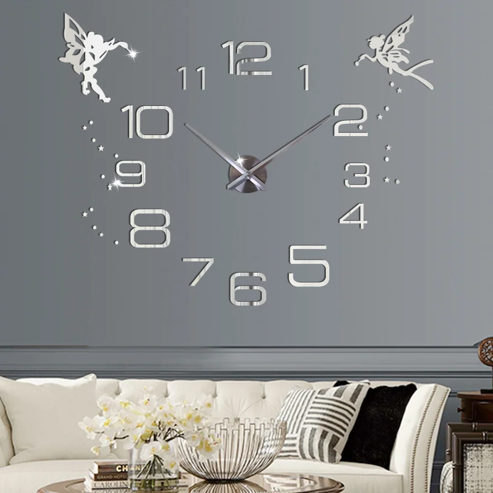 3D DIY большие настенные часы Ангел акриловая Зеркальная Наклейка н...