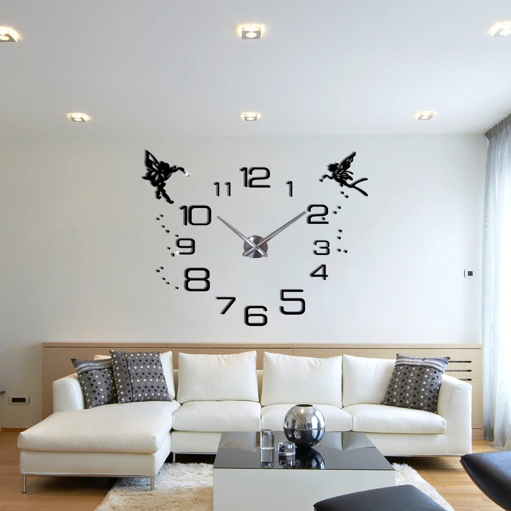 Акриловые большие настенные часы, 47 дюймов, самоклеящиеся, ангел н...