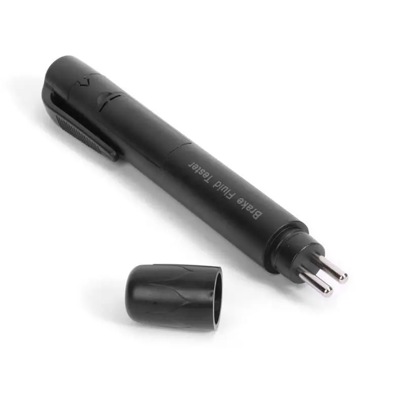 Ручка для проверки тормозной жидкости измеряет изменение содержания воды в тормозном масле на основе изменения проводимости. Он четко показывает степень содержания воды через светодиодный. Высокое содержание воды приведет к понижению температуры кипения, что повлияет на эффективность торможения, а также к коррозии главного тормозного цилиндра и поднасоса, что приведет к ржавчине и захвату. Красный светильник означает, что Тормозная жидкость должна быть заменена немедленно, зеленый светильник указывает на хорошее состояние, а желтый светильник указывает на то, что это условие приемлемо, но оно должно быть заменено. Его работа проста с точным и быстрым тестированием.
