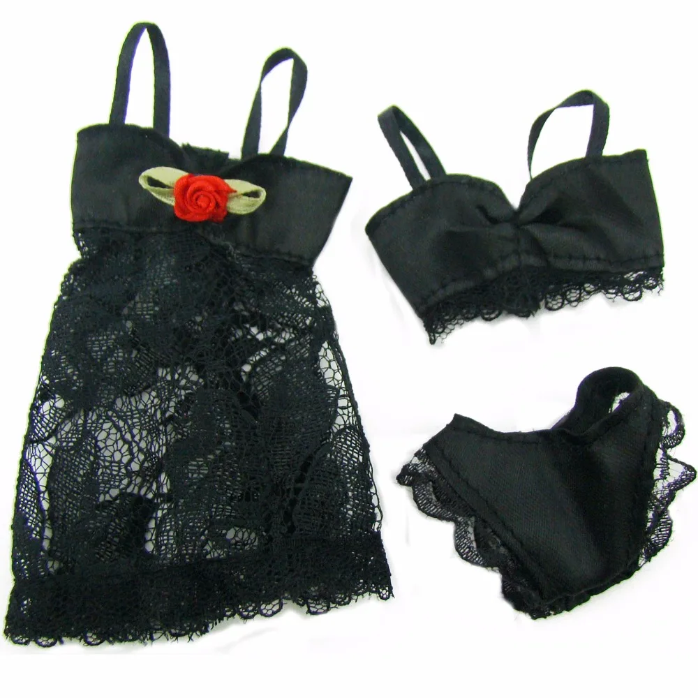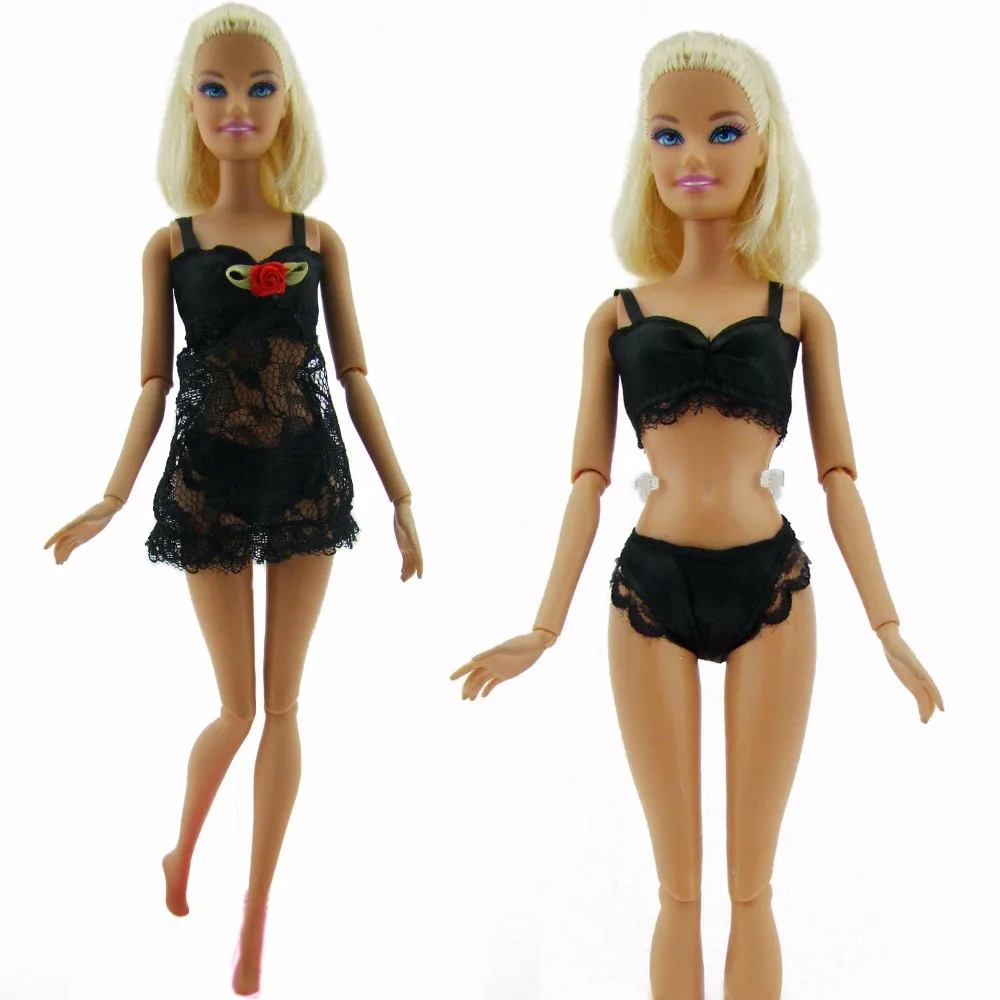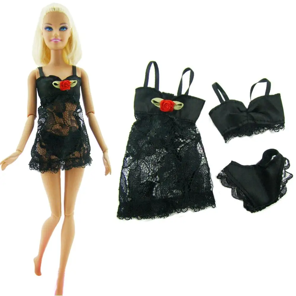 Черная Пижама ручной работы, 1 комплект, домашняя одежда, бюстгальтер, нижнее белье, кружевное платье, Одежда для куклы Барби 12 дюймов, аксессуары для игрушек
