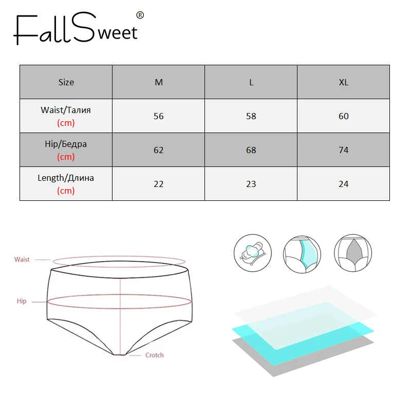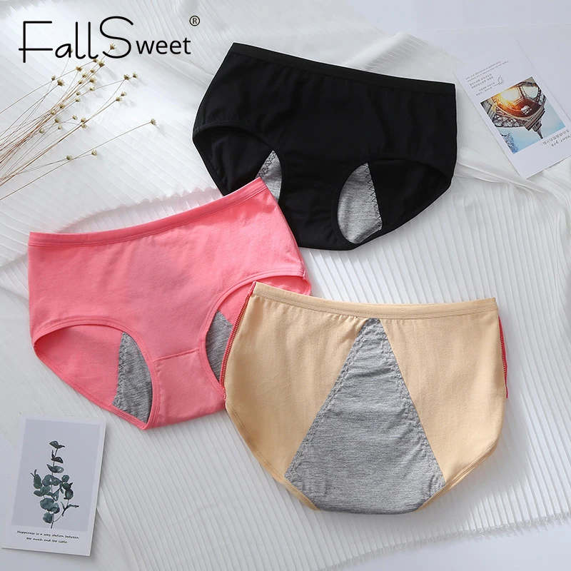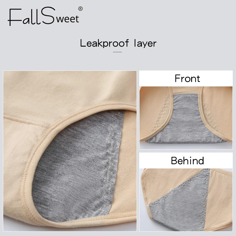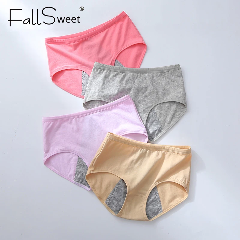 FallSweet 5 шт.лот! Женские трусики со средней талией, сексуальные трусики с защитой от протекания, нижнее белье, XXXL