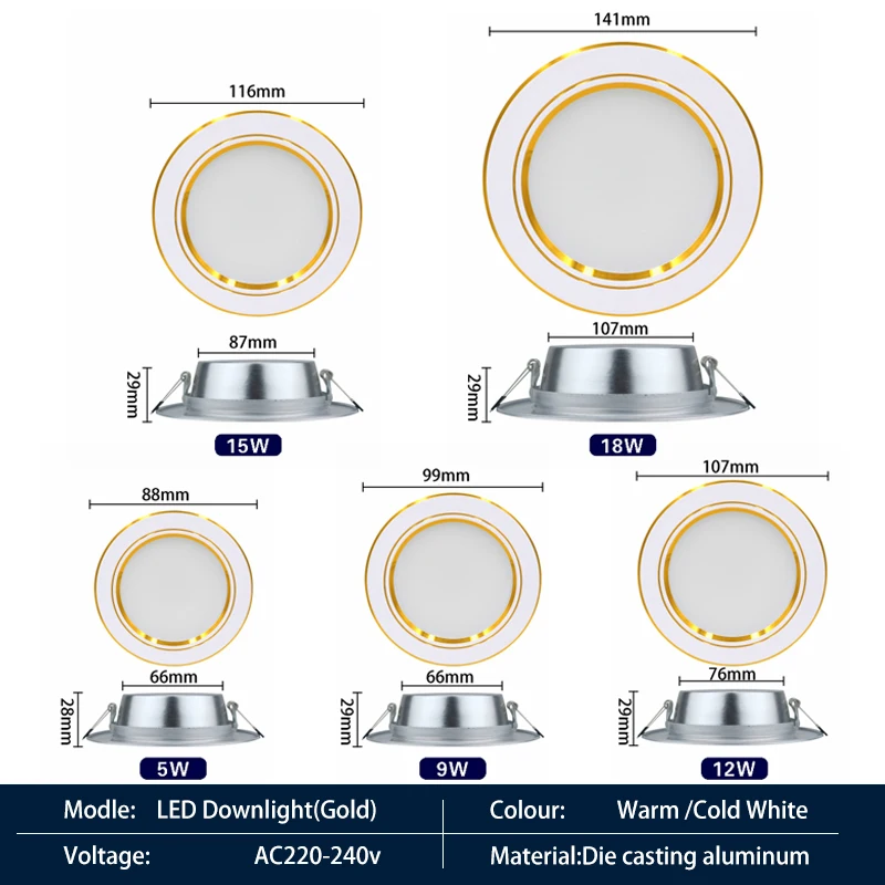 6 шт.лот светодиодный светильник 5 Вт 9 Вт 12 Вт 15 Вт 18 Вт круглый ультратонкий алюминиевый встраиваемый светильник 220-240 В Светодиодная лампа Внутреннее светодиодное точечное освещение