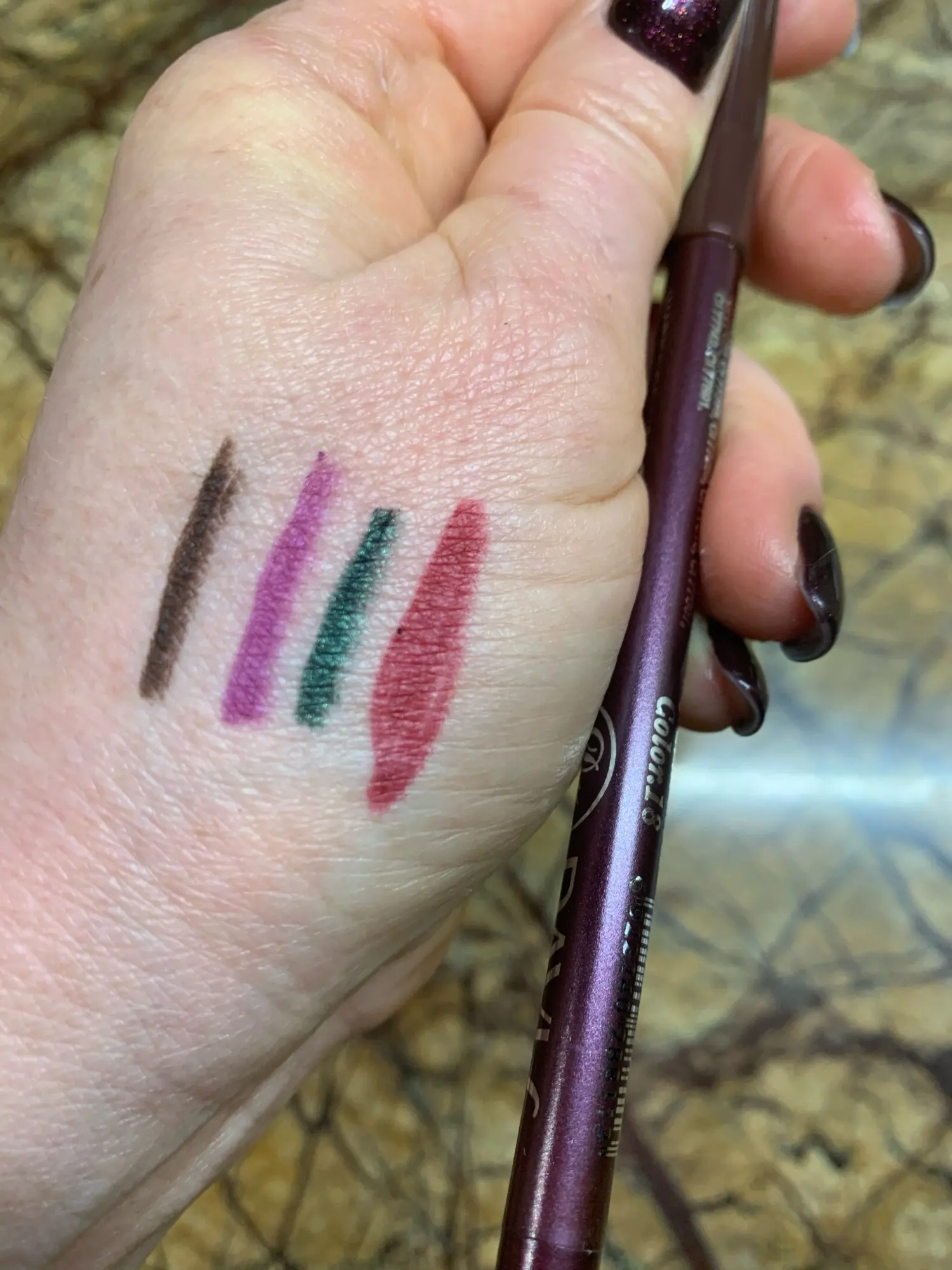 Карандаши качественно сделаны, но не водостойкие. Цвета конечно отличаются. Например, белый - это не белый, а больше просто полупрозрачно перламутровый. Их можно точить! Шли очень долго, настолько, что успела открыть спор. Так то довольна, мягкие, и для губ и для глаз подойдут