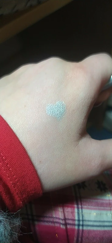 Жёсткий, жирный - слабо блестит на коже не придавая цвета, просто заказала для интереса