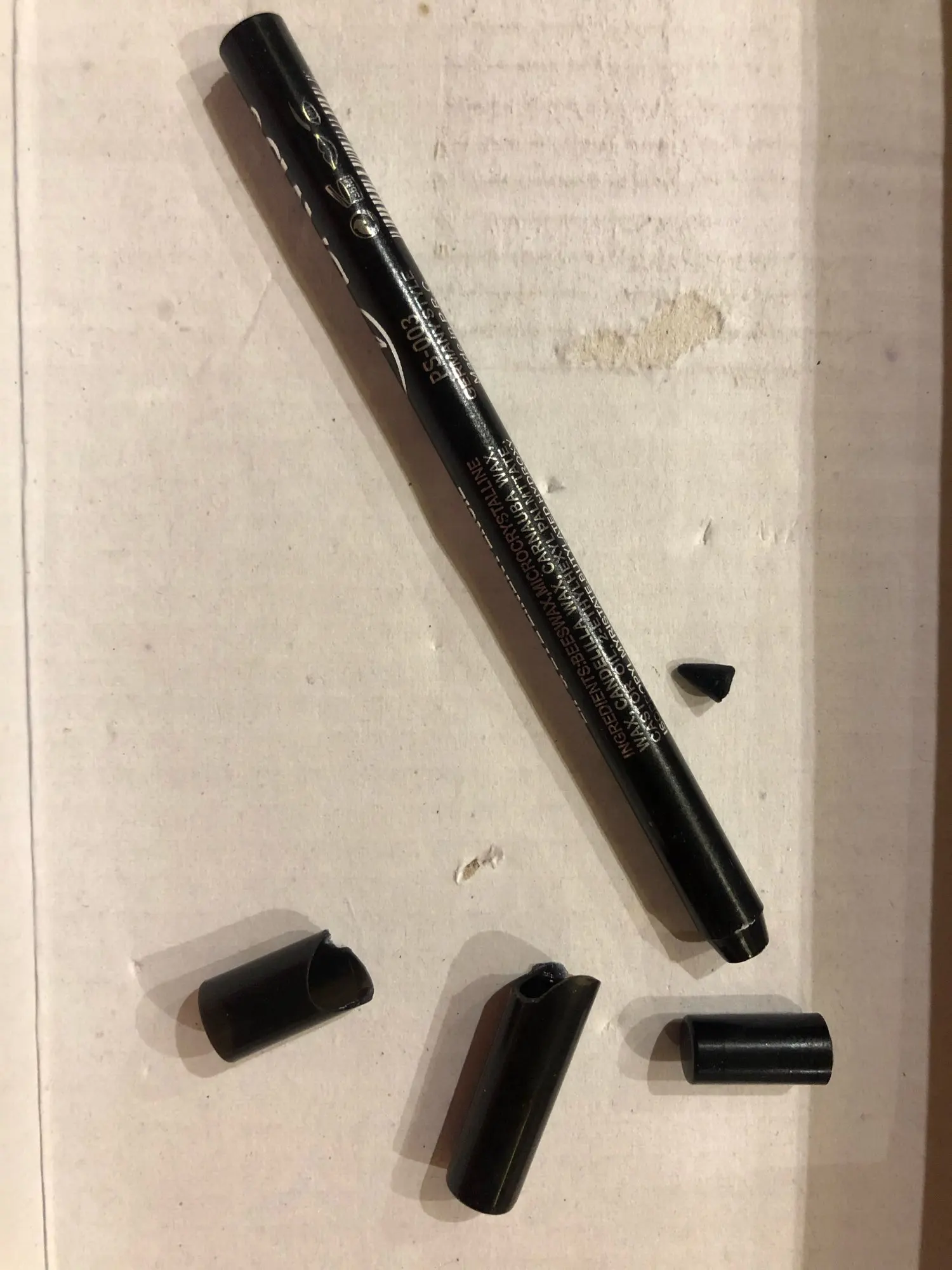 Шло долго, не отслеживалось. На кончике карандаша трещина, скорее всего обломится при первом использовании. Цвет соответствует.