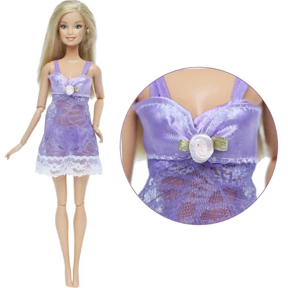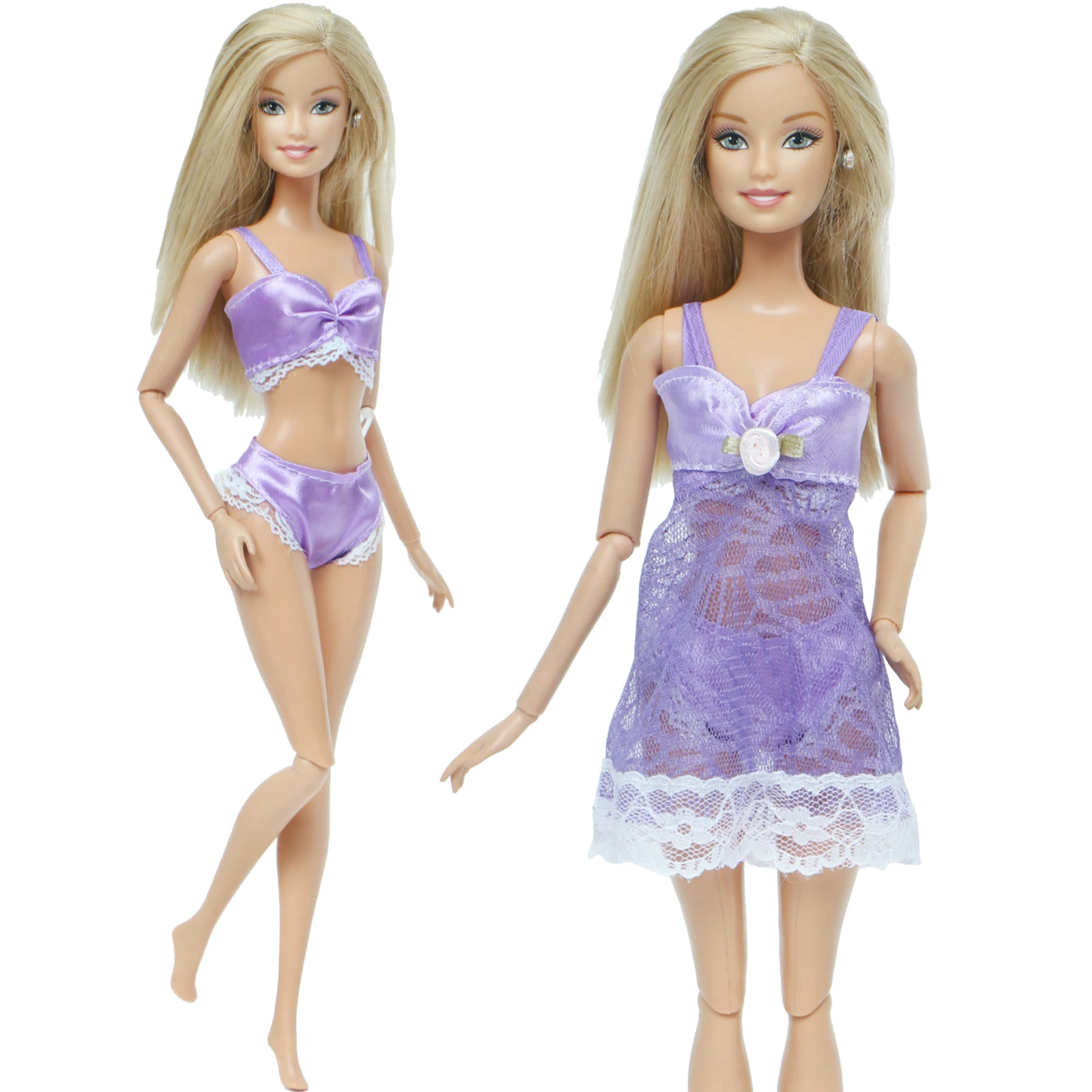 1 комплект, фиолетовая Пижама 3 в 1, нижнее белье, бюстгальтер, нижнее белье, платье, кружевные аксессуары для дома, Одежда для куклы Барби, игрушки