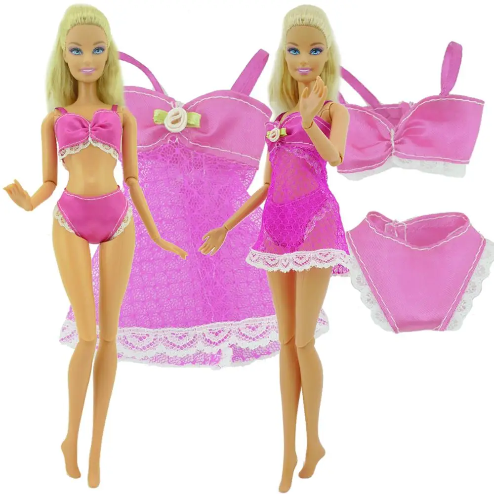 3 в 1, кружевная Пижама, нижнее белье, бюстгальтер, платье, аксессуары для дома, куклы Барби, игрушки, 1 комплект