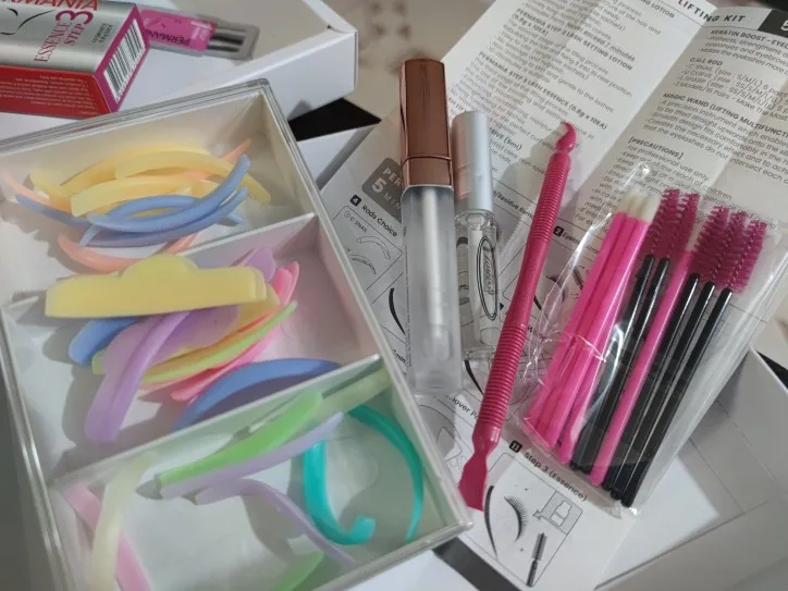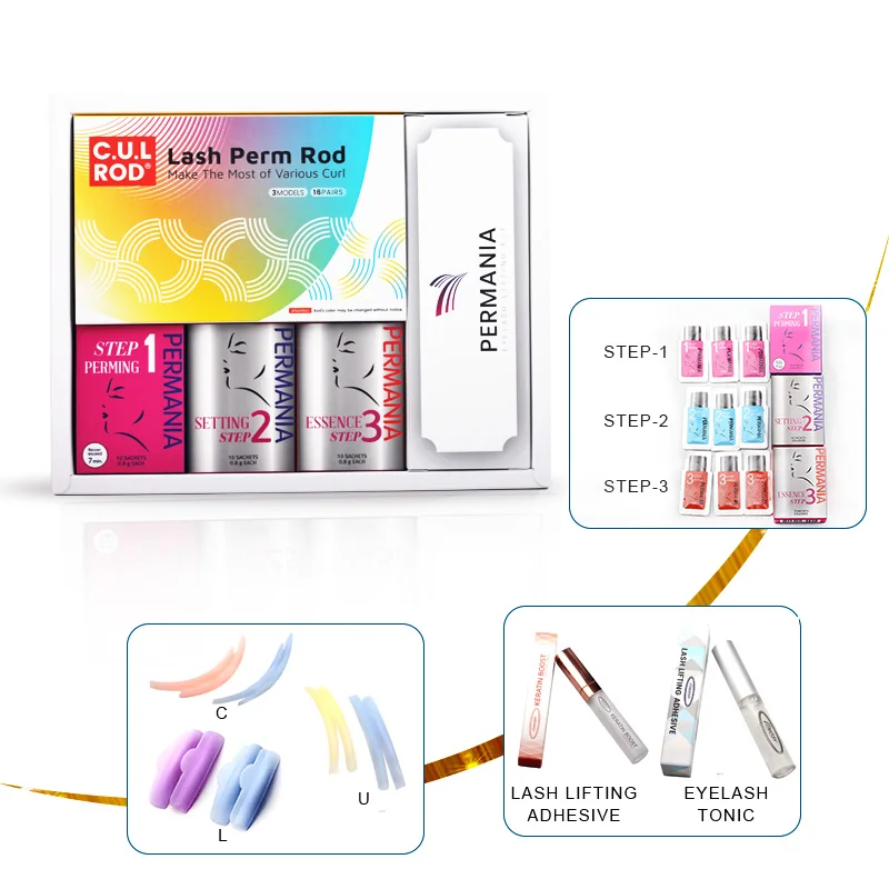 1. Шаг Perminia 1 (0,8g X 10EA)2. Шаг Perminia 2 (0,8g X 10EA)3. Шаг 3 Perminia (0,8g X 10EA)4. Клей для ресниц Lomansa (5 мл)5.Lomansa Keratin Boost (5,5 мл)6.C.U.L стержень (ресницы Пермь стержень)-C curl (Размер: S/M/L) 3 пары-U curl (Размер: SS/S/M/L/LL) 5 пар-L curl (Размер: S/M/L/LL) 4 пары7. Волшебная палочка