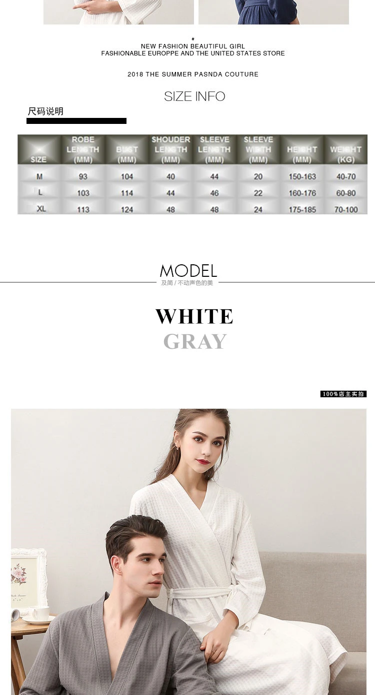 Халаты для влюбленных, летние, вафельные, для мужчин, женщин, мужчин, кимоно, ночные рубашки, размера плюс, халат для спа-ванны, 3XL