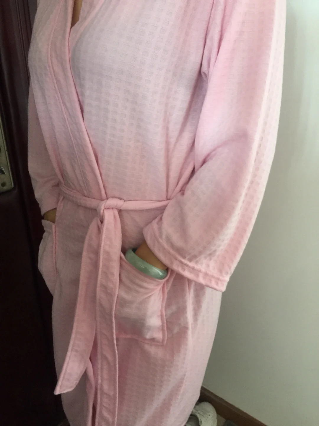 Срок доставки занимает 9 дней Быстрая доставка, этот новый модный банный халат стоит цены, действительно хорошего качества, ткань-вафля, которая приятна для тела, рост тела 178 см, мой вес 86 кг, хотел, чтобы размер L был хорош для моего тела, сильное поглощение воды и стильный пошив, удобно носить, я женщина-учитель, срочно нужна ночная одежда, когда принимаю ванну, выбранный розовый цвет выглядит хорошо, он рад купить в этом магазине, спасибо большое