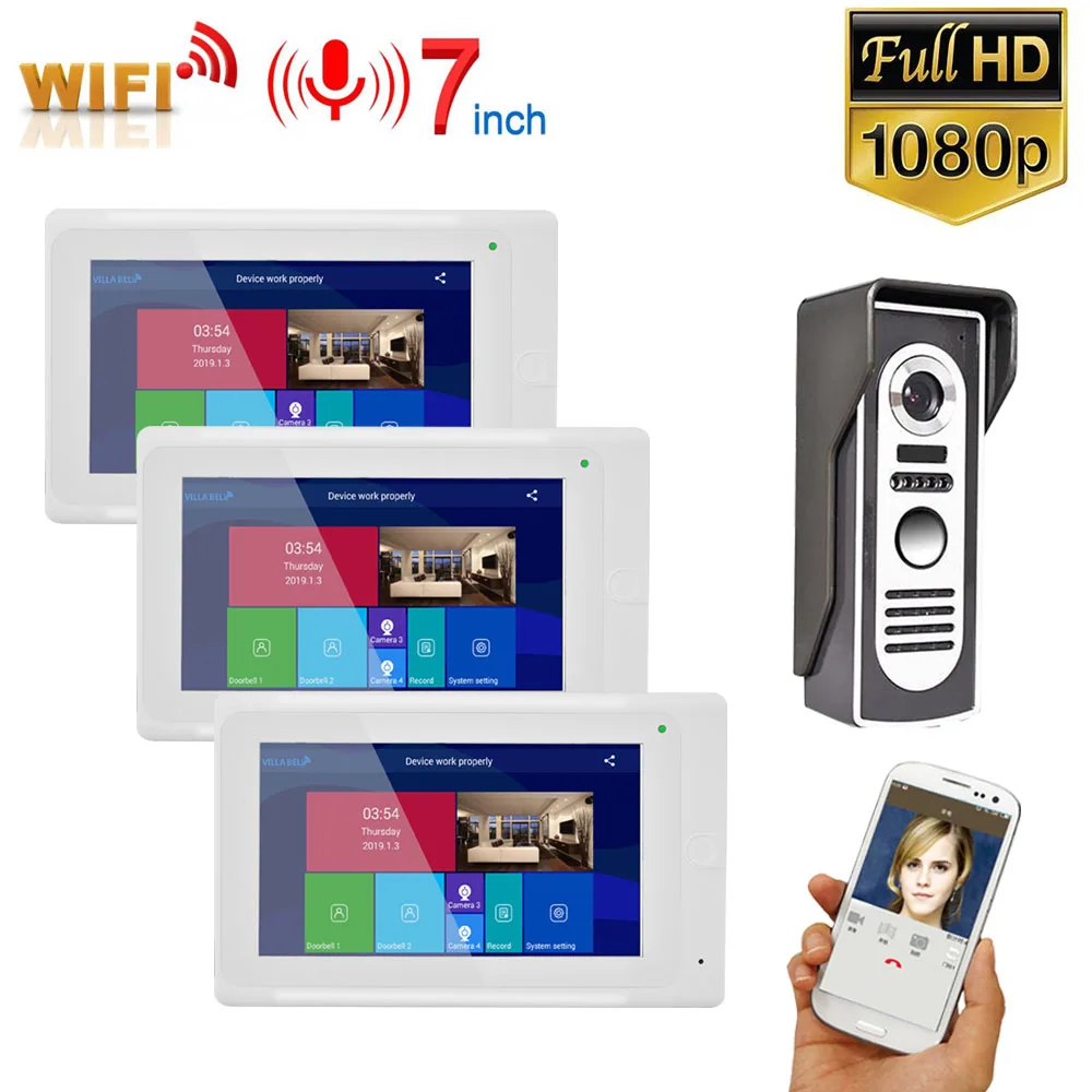 Беспроводной видеодомофон GAMWTER, 7 дюймов, 3 монитора, Wi-Fi, домофон, проводная Ночная камера HD 1080P
