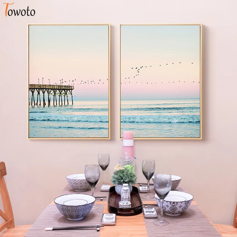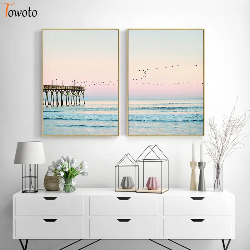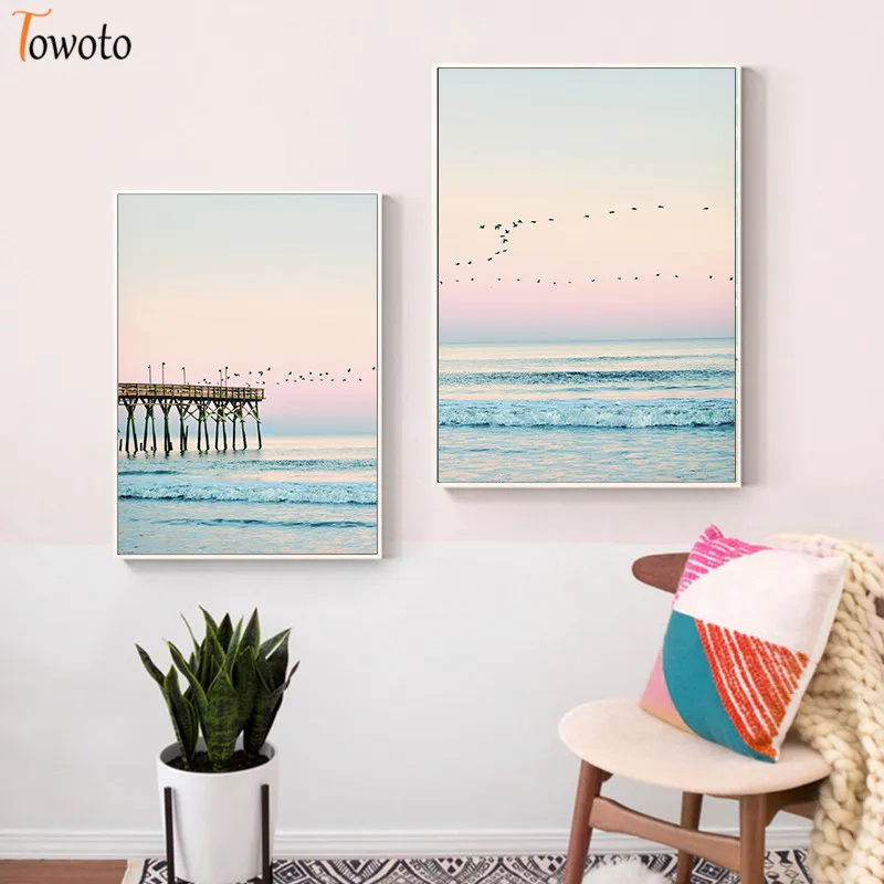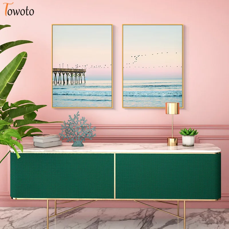 Пейзаж, Картина на холсте Nordic плакат на берегу океана закат розового цвета с рисунком в виде Детская Wall Art Украшение стены изображения прибрежных Декор