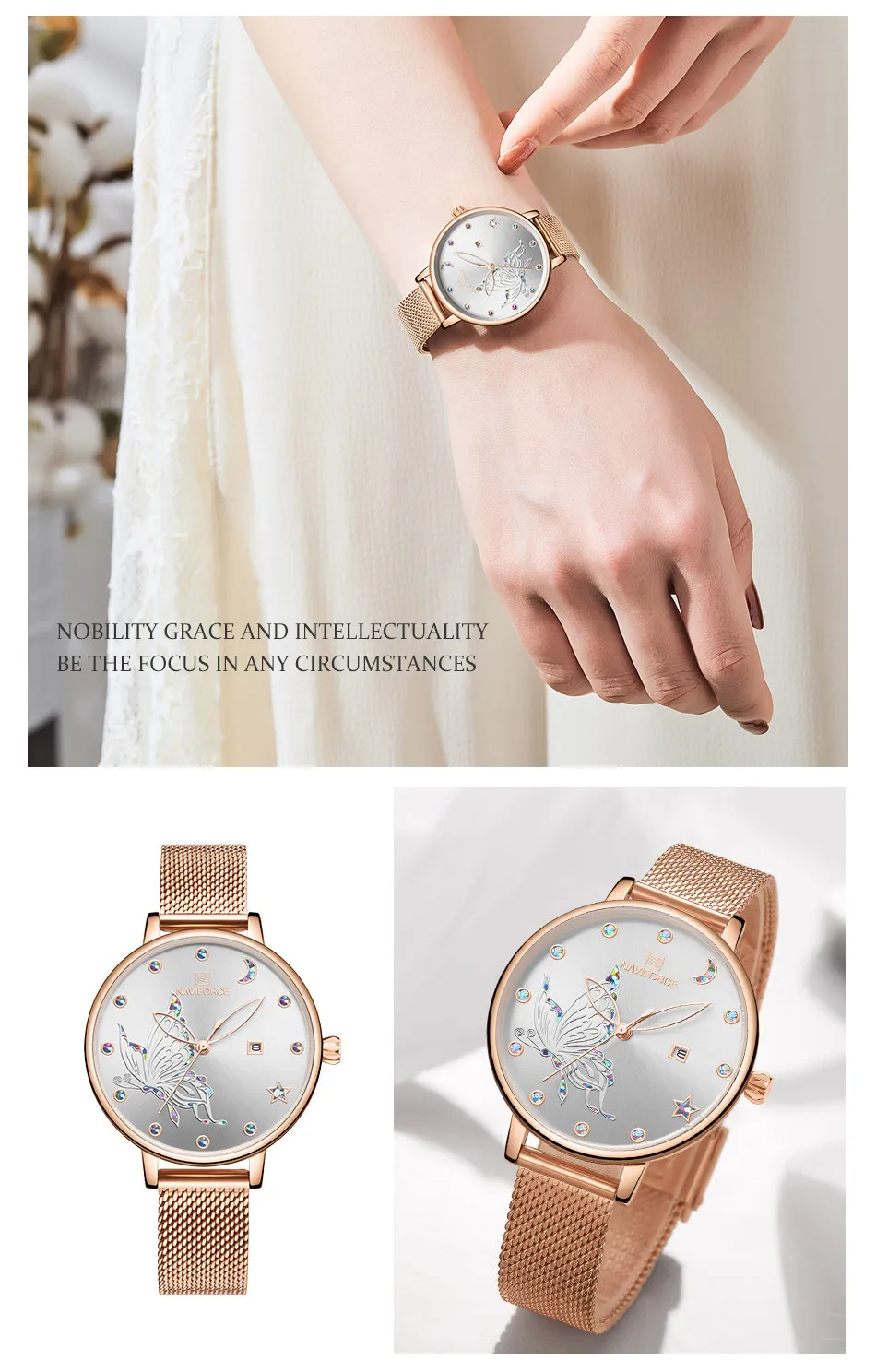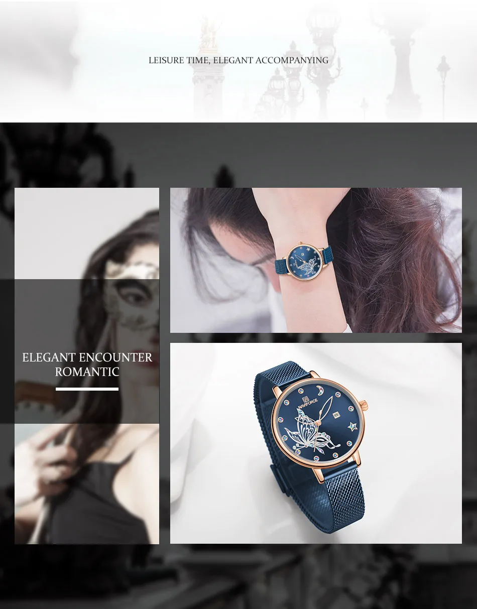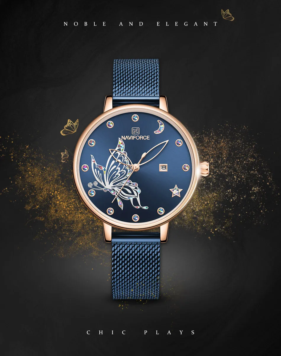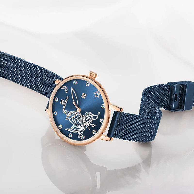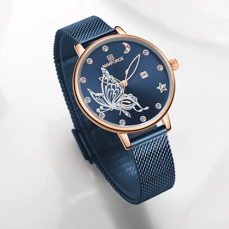 NAVIFORCE, женские часы, роскошный бренд, яркие часы-бабочка, модные, кварцевые, женский, сетчатый, нержавеющая сталь, водонепроницаемые, подарок, часы 2020