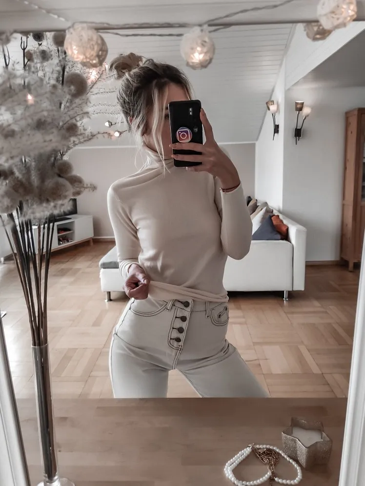 Это очень классная базовая водолазка! Мягенькая и отлично тянется. С бежевым бюстгальтером ничего не светит. Мои параметры 84/62/92. Очень рекомендую к покупке Подписывайтесь на мой Инстаграм и телеграм там много крутых образов с Али: @dashenka_weiss