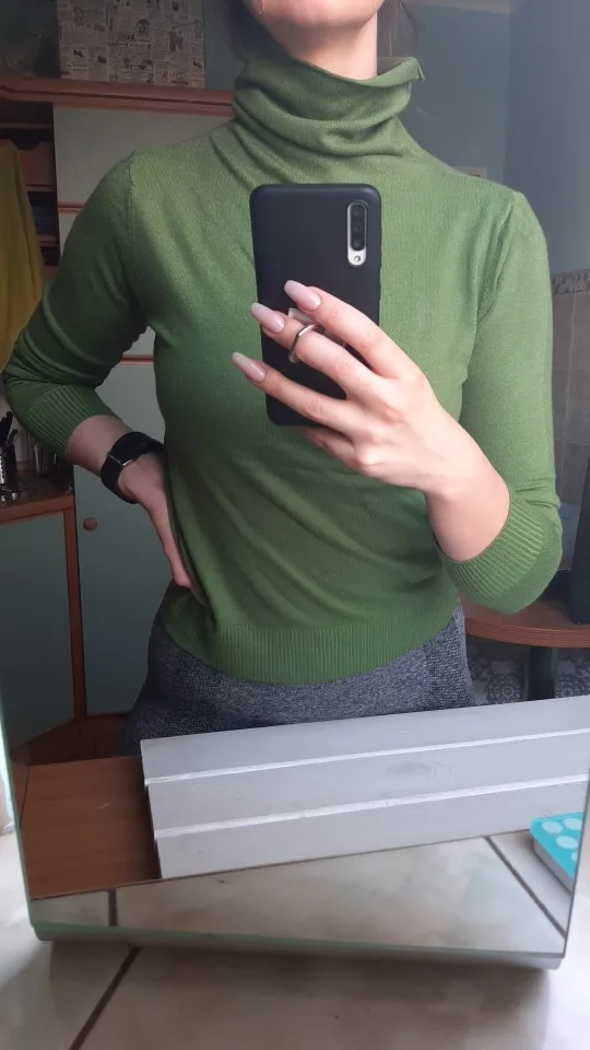 Доставка очень быстрая. Водолазка понравилась. Материал мягкий, это приятно ощущать кожей, но, думаю, локти будут со временем растягиваться. Еще надо исхитриться её сушить. Первый раз я разложила её на сушке, остались следы от перекладин. Так что лучше на вешалке, наверное.