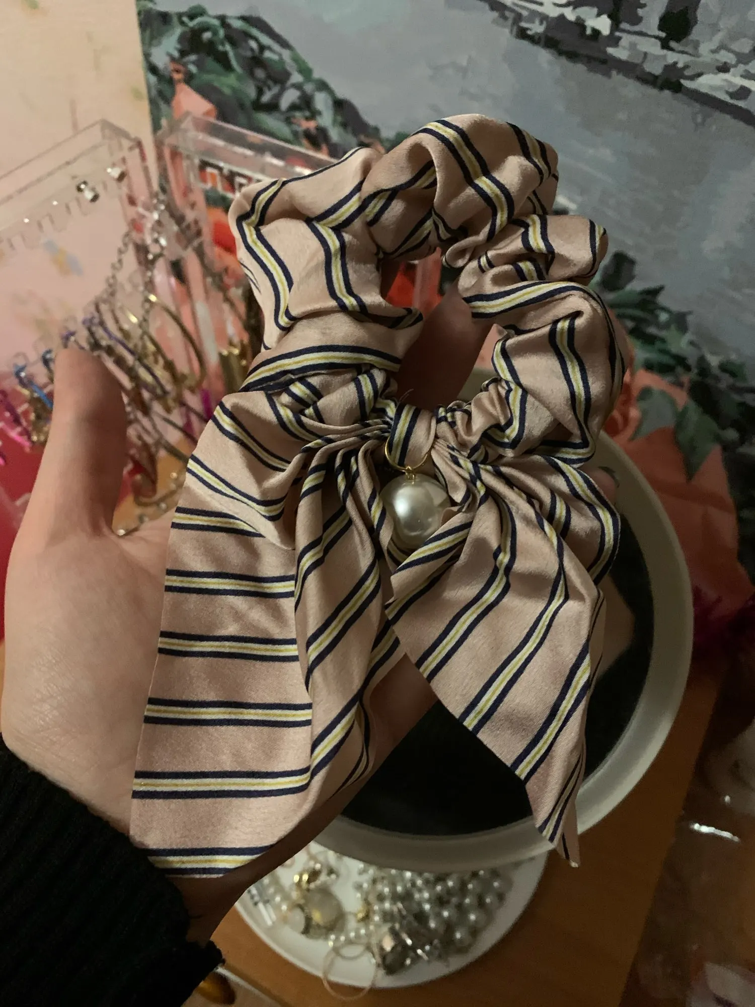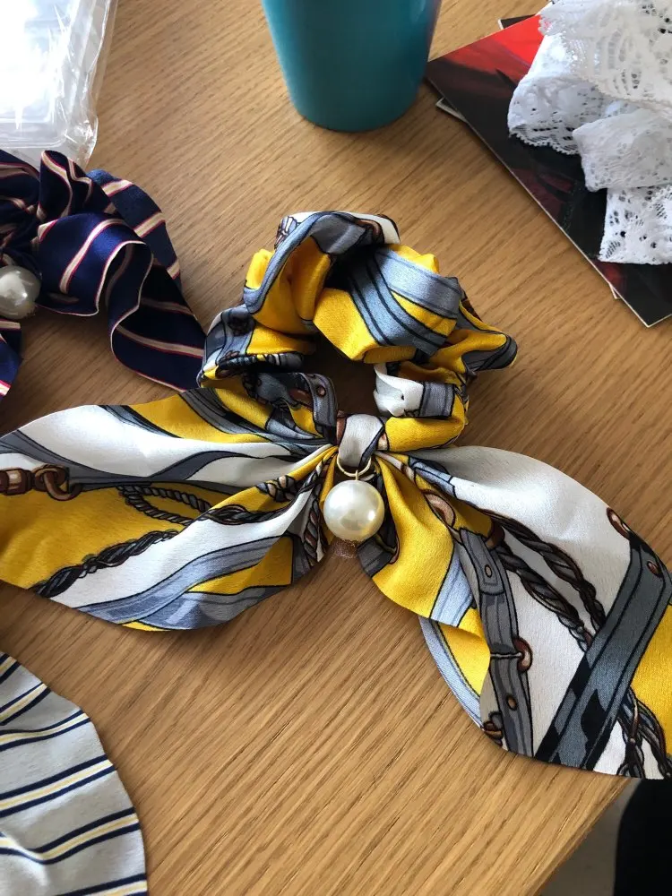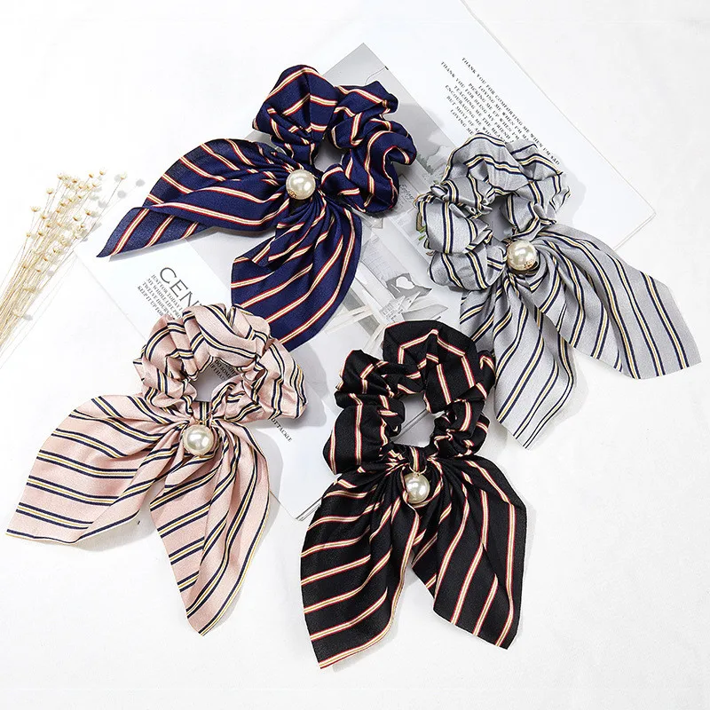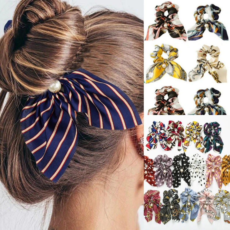 Женская шифоновая резинка для волос MINHIN, резинка для волос с жемчужинами и бантом