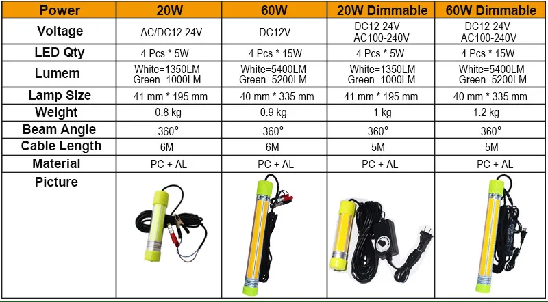 Новое поступление, светодиодная зеленая подводная рыболовная лодка с регулируемой яркостью 20 Вт COB AC110V-240V 12 В постоянного тока, ночная рыболовная приманка