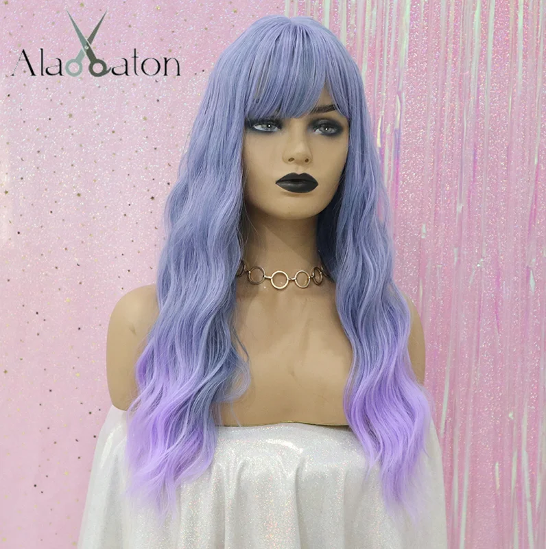 Искусственные волосы ALAN EATON с длинными волнистыми волосами афро-волны с челкой для чернокожих женщин волнистые волосы Омбре синие фиолетовые Косплей Loliata