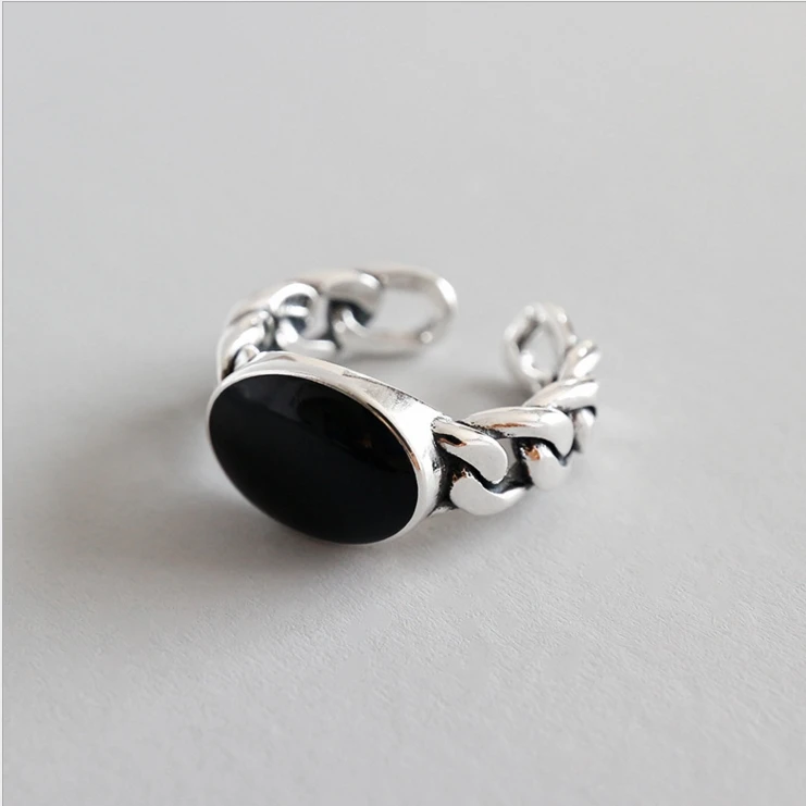 100% Стерлинговое Серебро 925 пробы, модное большое круглое черное кольцо из смолы, Женское кольцо для вечерние, не выцветает, подарок, Прямая поставка