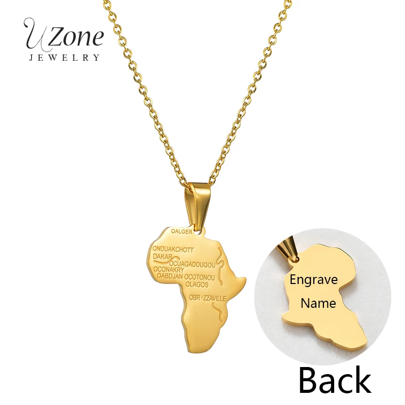 UZone Ретро Карта Южной Африки из нержавеющей стали кулон ожерелье Пользовательское имя Дата гравировка Африканская Карта сувениры подарок для женщин и мужчин ошейник