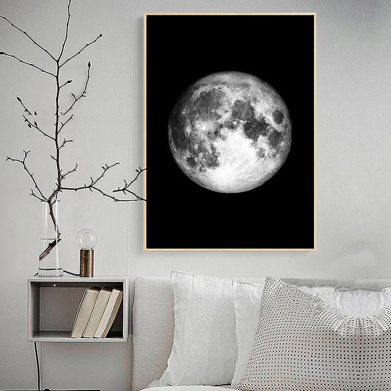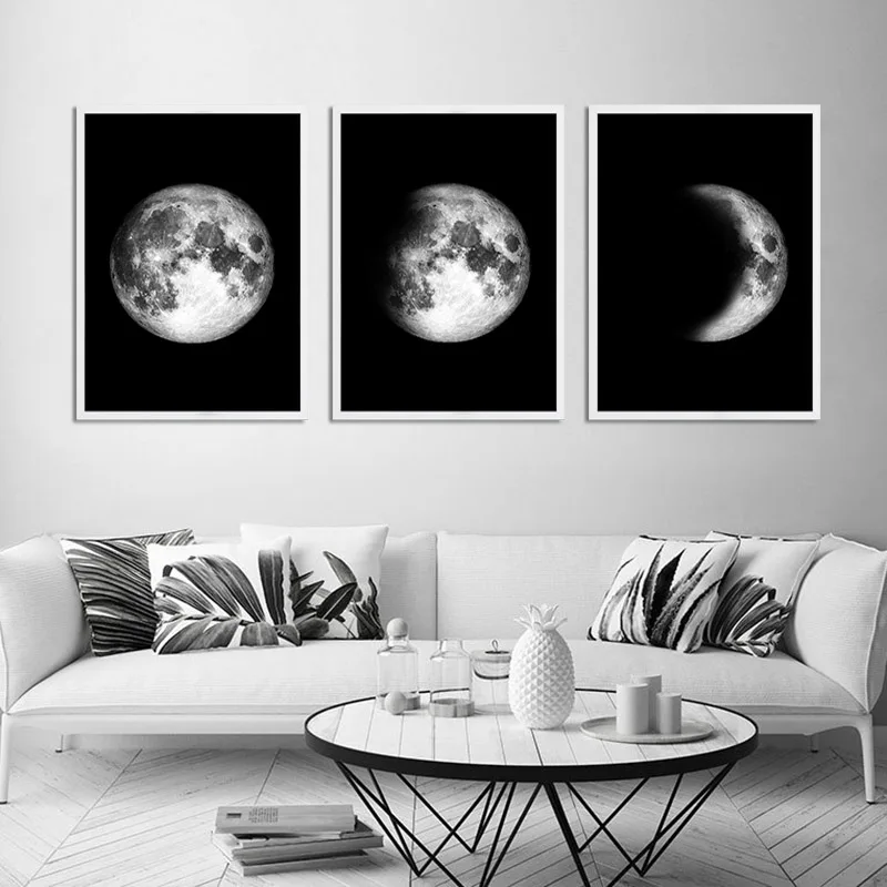 Плакат Лунная фаза Галактика Космос черно-белый скандинавский холст настенный принт Минималистичная живопись современный Декор для дома комнаты картина