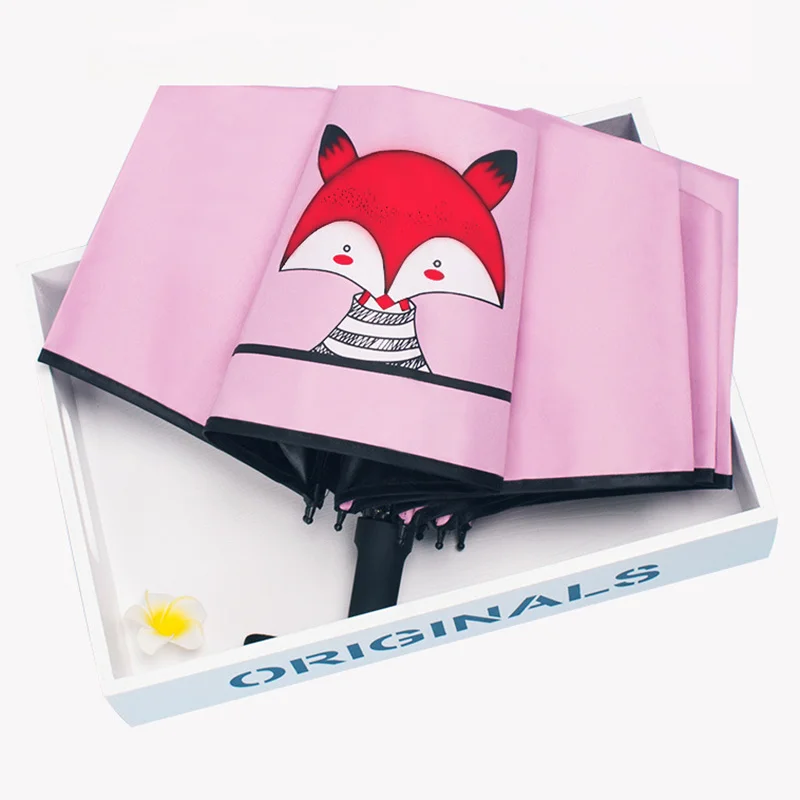Детский складной зонт с рисунком, креативный солнцезащитный зонтик с черным покрытием для детей и женщин