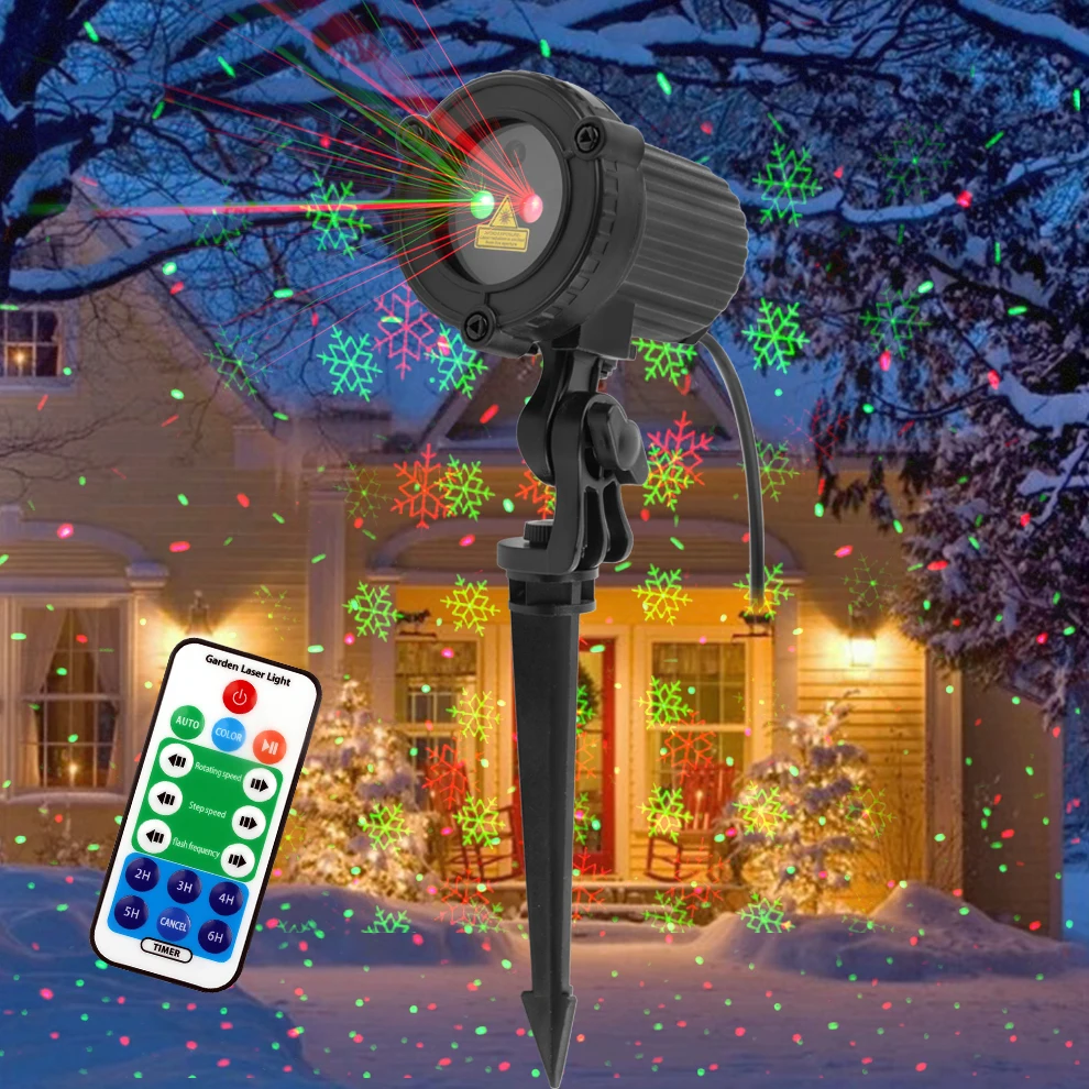 Рождественский лазерный проектор ALIEN с красными зелеными снежинками и звездами, водонепроницаемый уличный светильник для сада, праздника, вечеринки, освещение для демонстрации рождественской елки