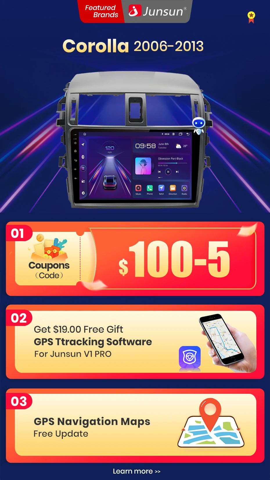 NameJunsun 2din car radio for Toyota Corolla 2006-2013