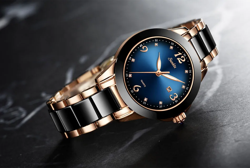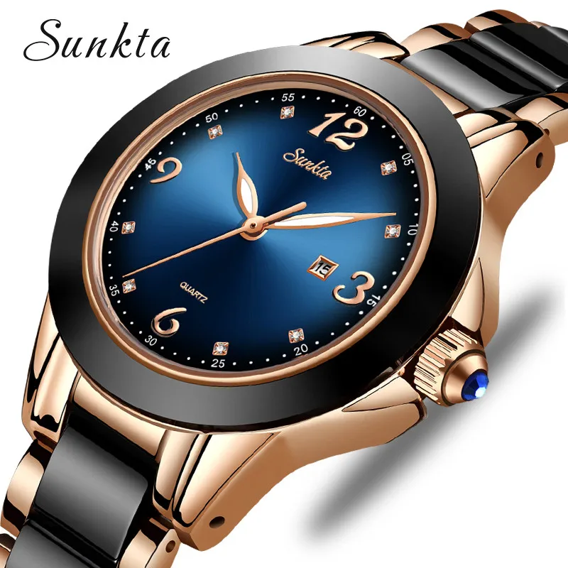 SUNKTA женские часы, лучший бренд, роскошные керамические стразы, спортивные кварцевые часы, женские синие водонепроницаемые часы, Relogio Feminino + коробка