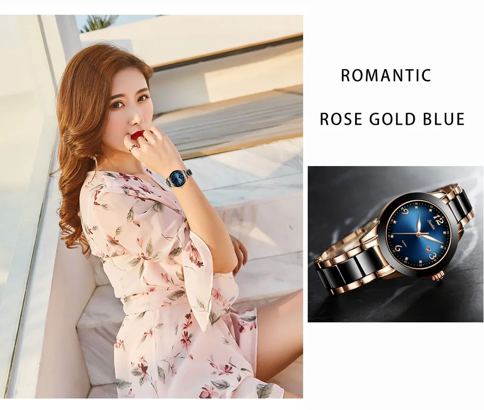Женские кварцевые часы SUNKTA, элегантные модные часы с керамически...