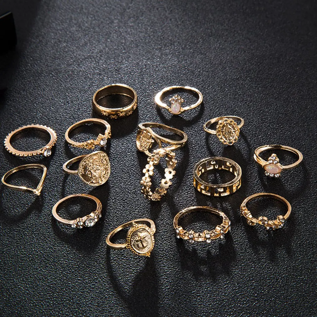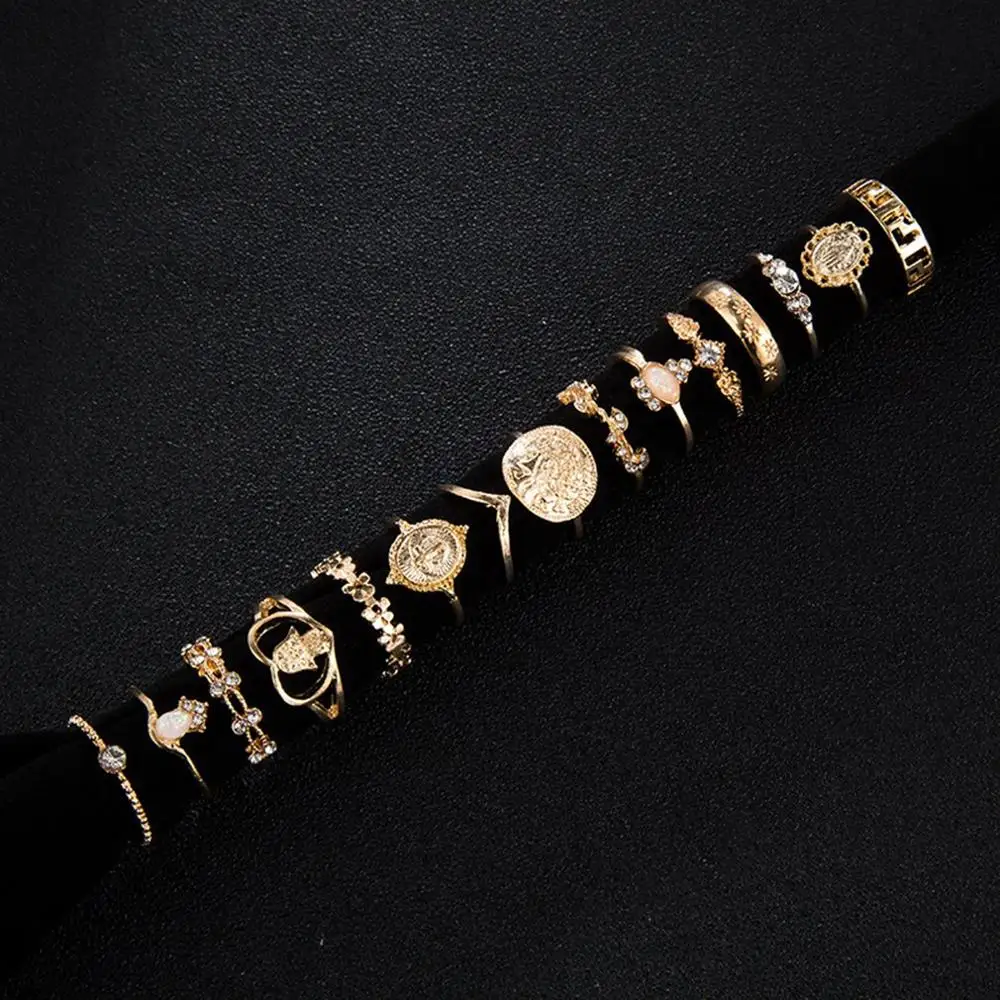 Набор креативных винтажных колец с золотыми монетками и крестиками, кольцо с бриллиантами, 15 шт., набор винтажных колец