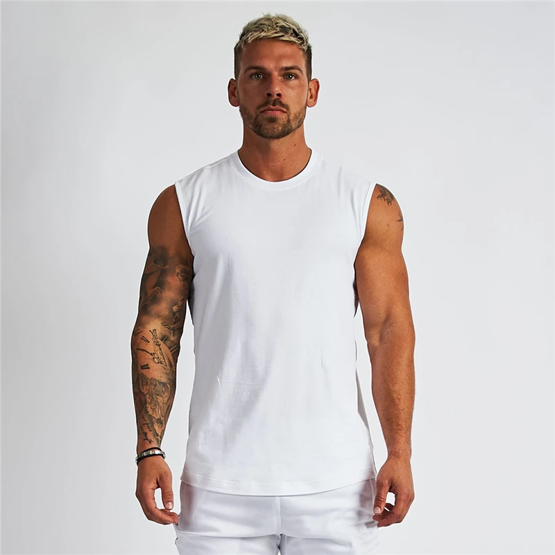 Майка мужская компрессионная для фитнеса, хлопковая одежда для спортивного зала, топ-майка для бодибилдинга, тренировок, майка для мышц