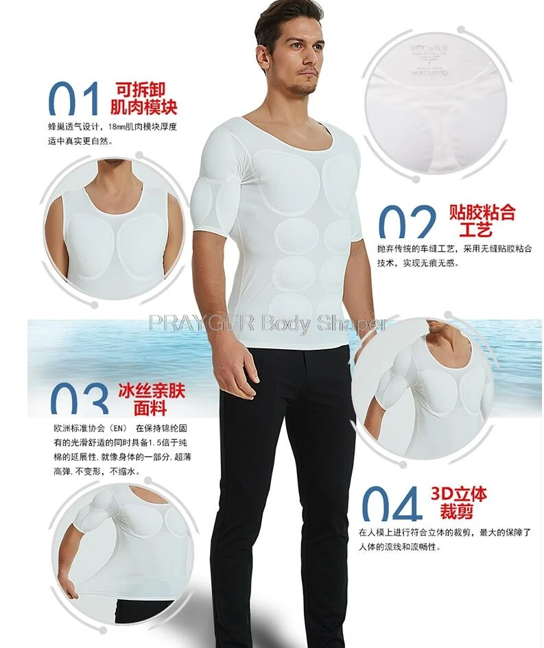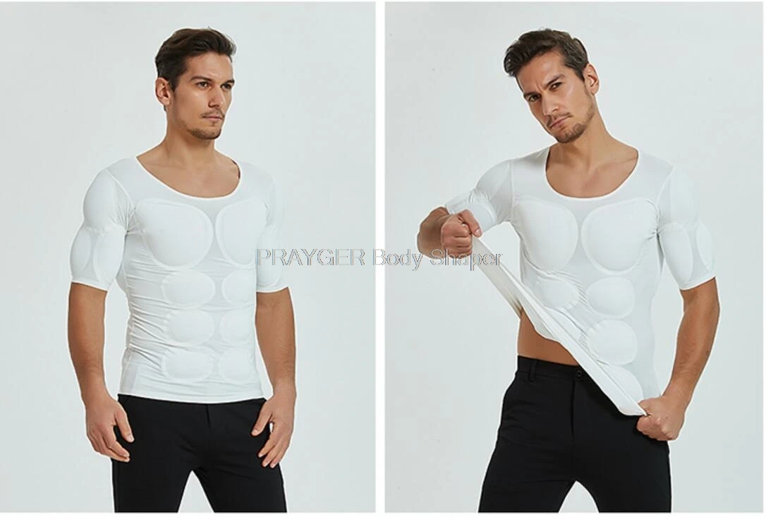 Fake ABS Muscles Shaper Invisible 8 Pack PEC Underwear Padded Shirts PRAYGER Men Strong Chest Stomach Body Tops
