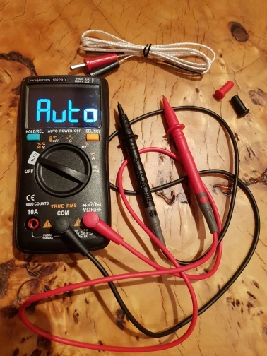 В Резиденции пользуюсь мультиметром DT-838 1994 года и там уже стал плохой контакт у переключателя. Для повседневных измерений заказал этот мультиметр. Питание 2xAAA. В комплекте щупы, термопара, чехол из прорезиненной ткани. Сравнил показания с RM303, поверенный на стандарте напряжения 1.5 года назад. Чтобы было 6000 отсчетов, нужно выбирать пределы 6V, 60V, 600V. Я подключал 9V и появился ведущий ноль. Точность при измерении напряжения свыше 6V около 1.3%. Щупы для обоих приборов использовались одни и те же, качественные силиконовые, с низким сопротивлением. В режиме Auto функция Hold не поддерживается, через 2 секунды сохраненное значение сбрасывается. На 2й фотографии измерял сопротивление 10K - здесь уже точность приемлимая. До 1V также приемлимая точность.