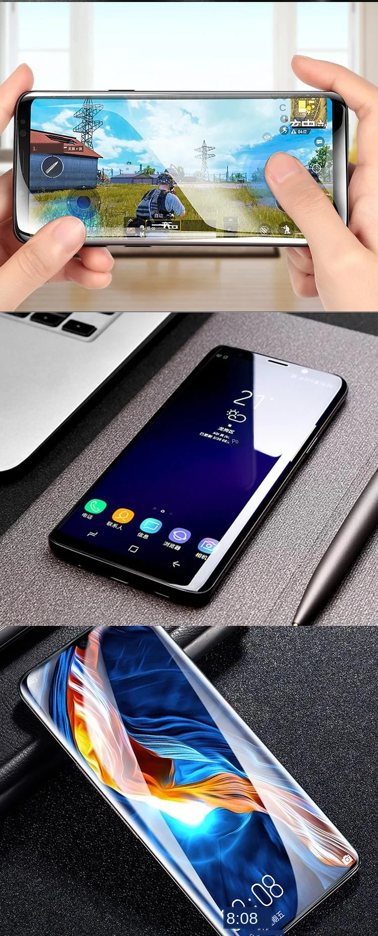 Пленка имеет хороший дизайн и легко надевается на экран. В целом хорошо.