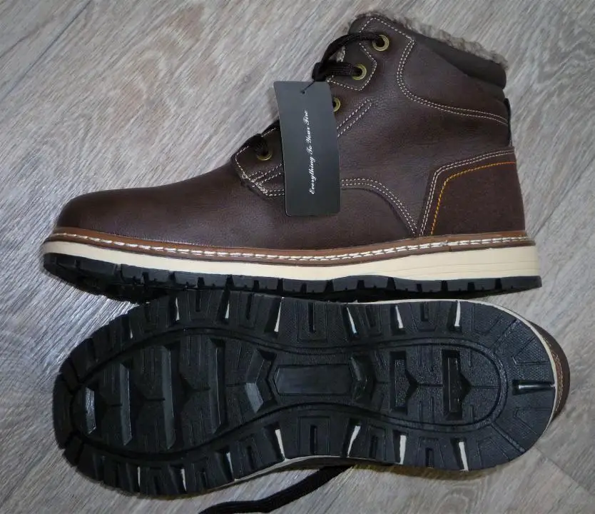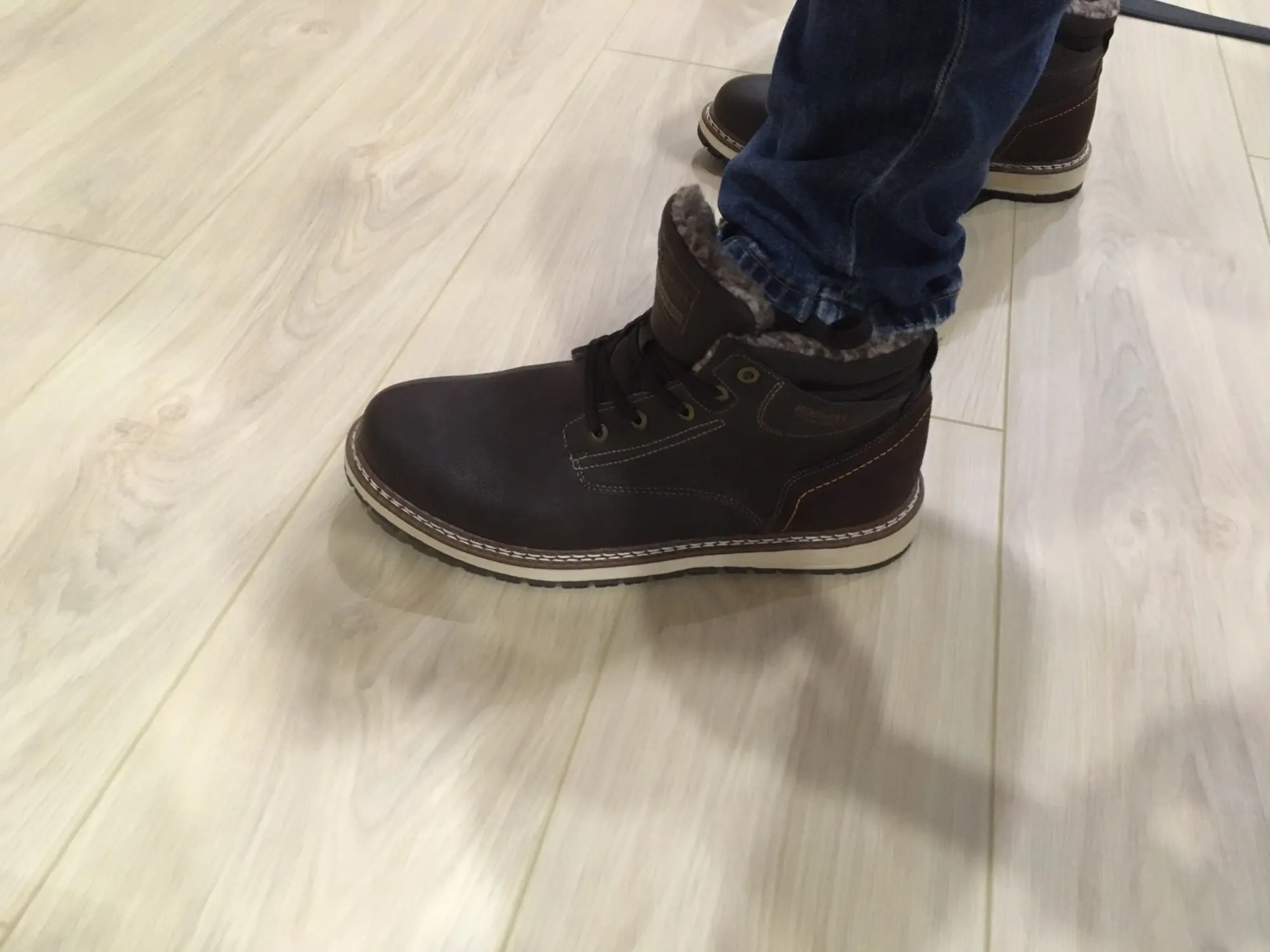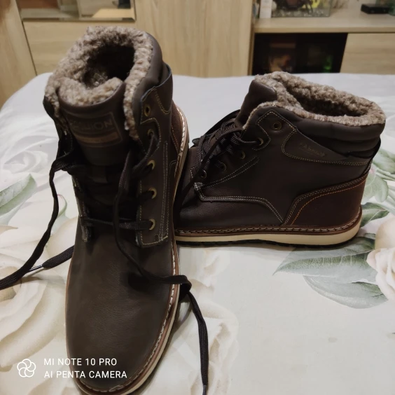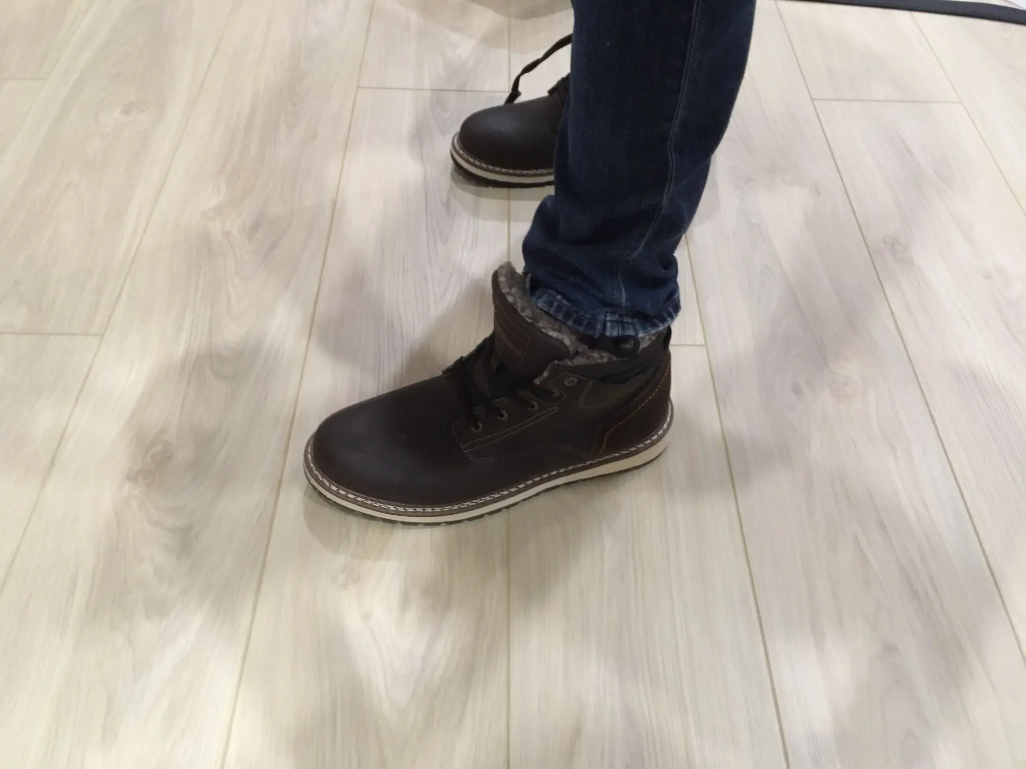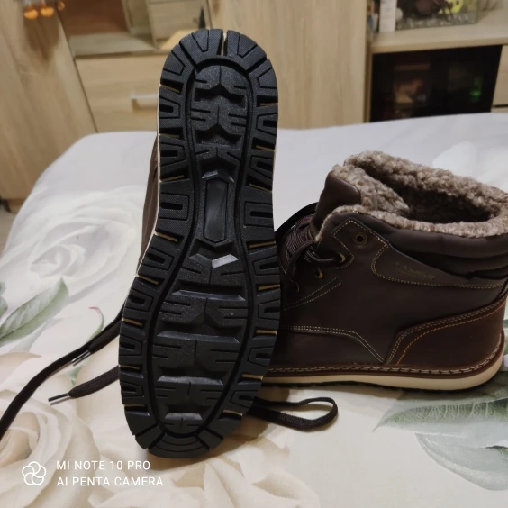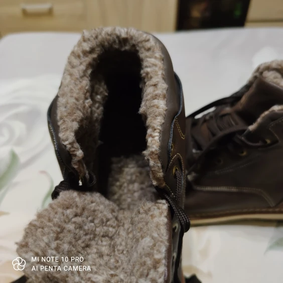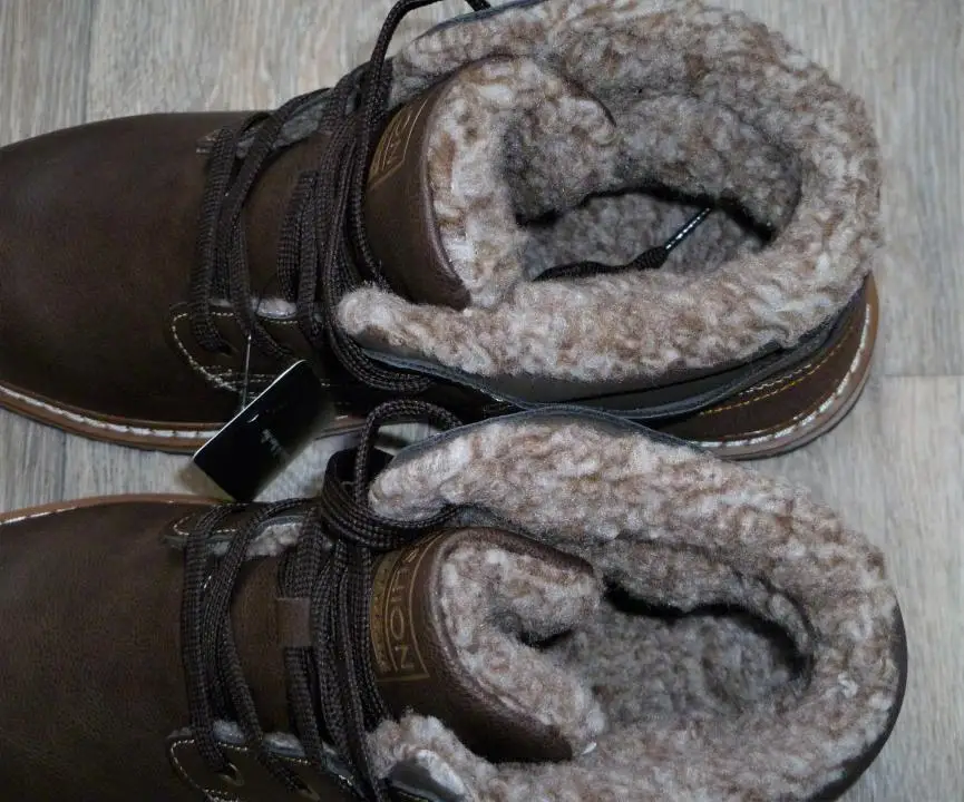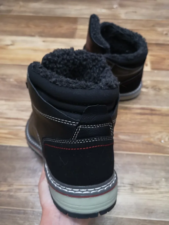 Ботинки качественные. Подошва, прошивка, верх - все на высшем уровне. Брал без меха. Стопа 27,5 см. Заказал на 28. Но промахнулся. надо было брать следующий размер. Большие пальцы упираются, а это для новых ботинок не есть хорошо. Отдал сыну. При заказе имейте это в виду. Либо мне не повезло. А так товар и продавца рекомендую.