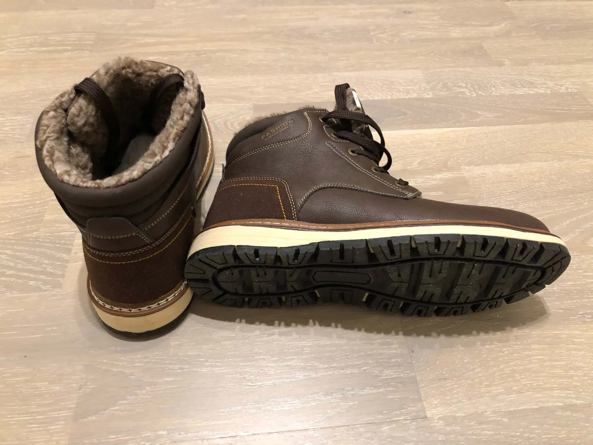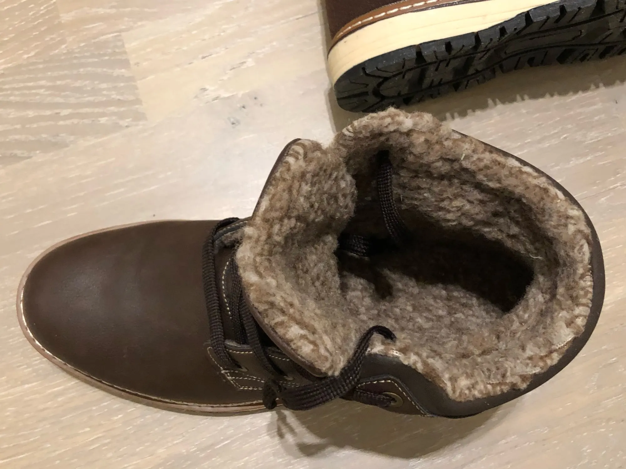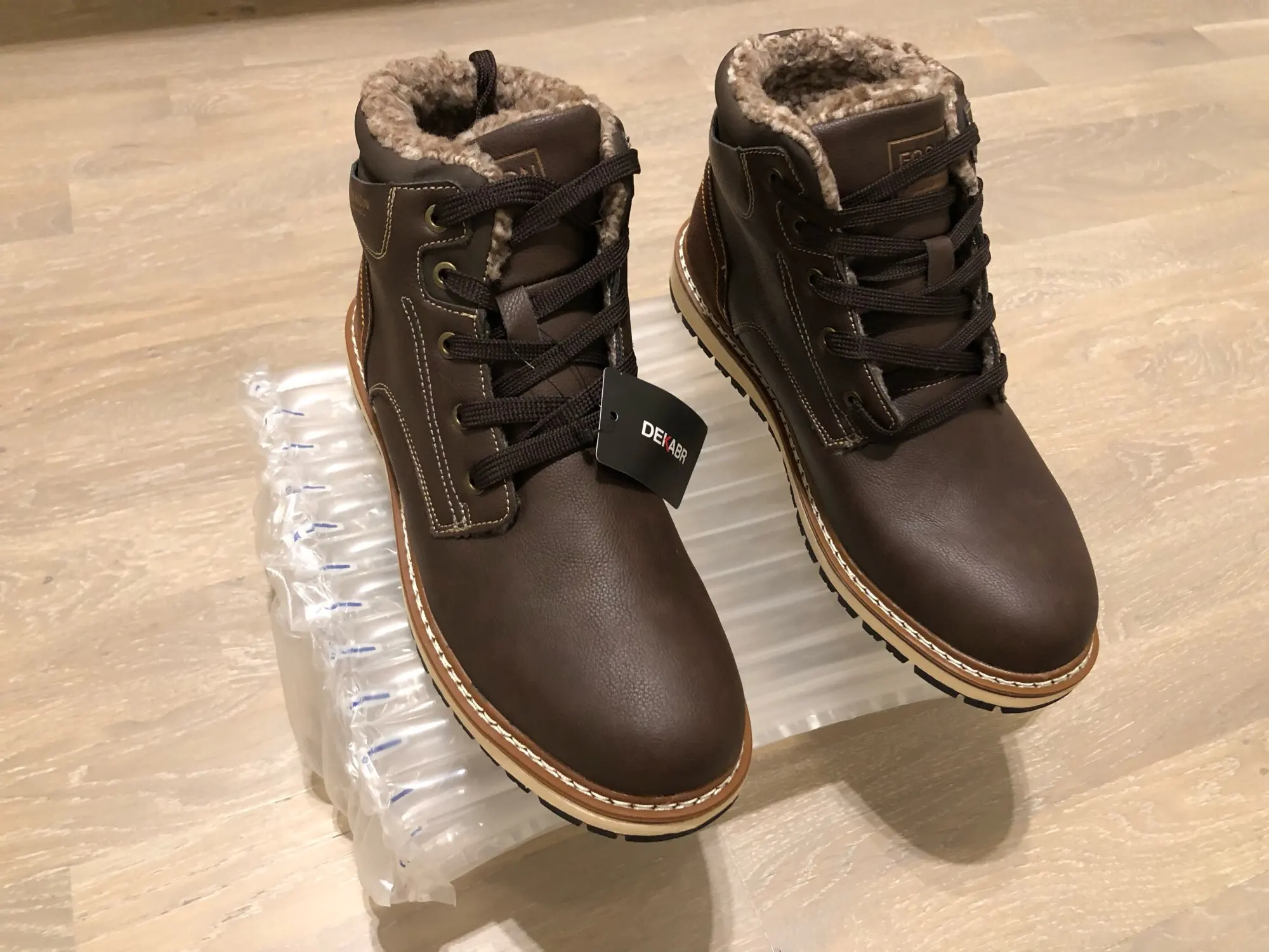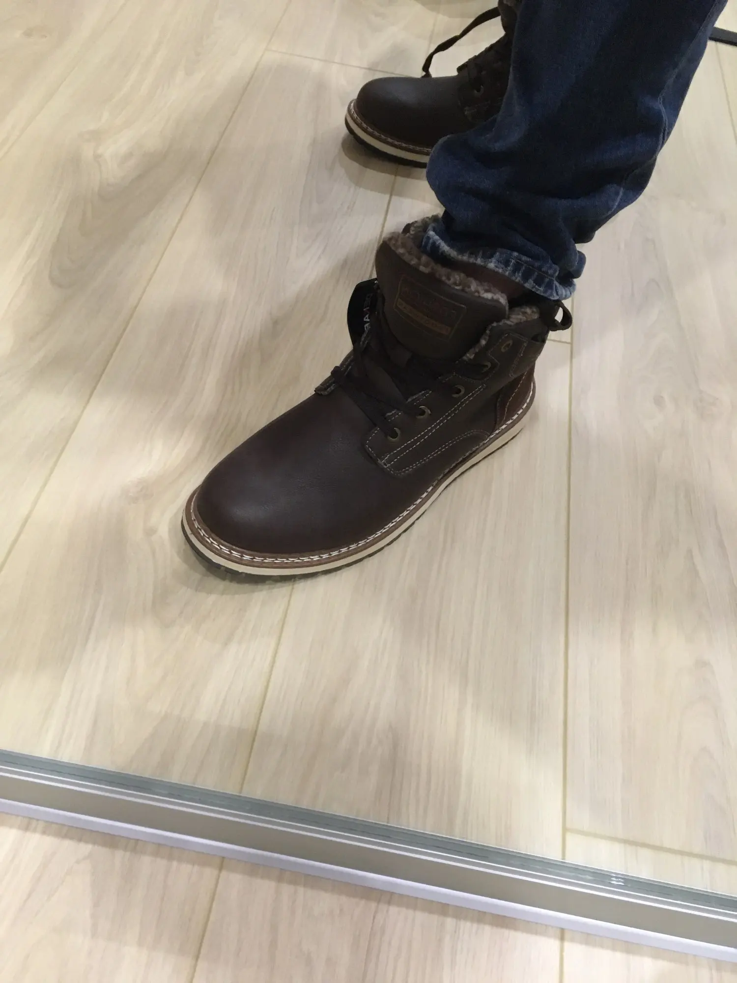 Ботинки качественные. Подошва, прошивка, верх - все на высшем уровне. Брал без меха. Стопа 27,5 см. Заказал на 28. Но промахнулся. надо было брать следующий размер. Большие пальцы упираются, а это для новых ботинок не есть хорошо. Отдал сыну. При заказе имейте это в виду. Либо мне не повезло. А так товар и продавца рекомендую.