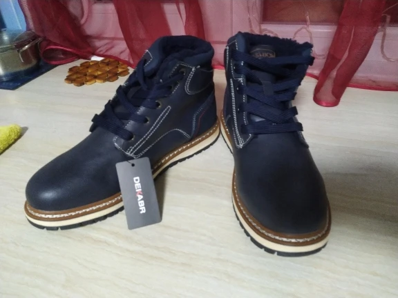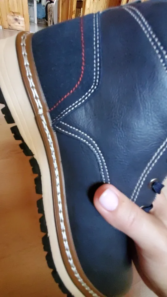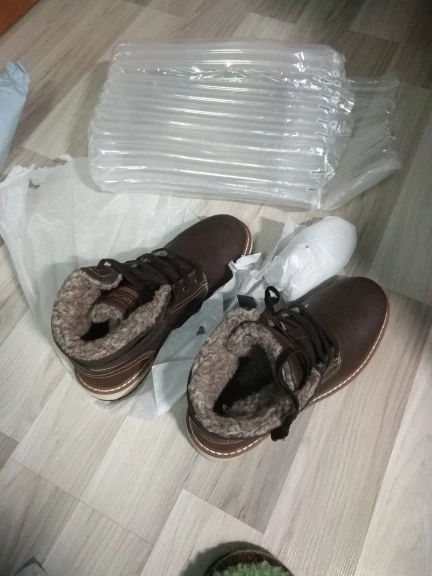 Ботинки хорошего качества, прошито все отлично. Тёплые в меру, не на морозы, на тёплую зиму. Пришли за месяц. Только мужу малы оказались, на 42,5 размер 43 мал. Жаль, Придётся пристраивать