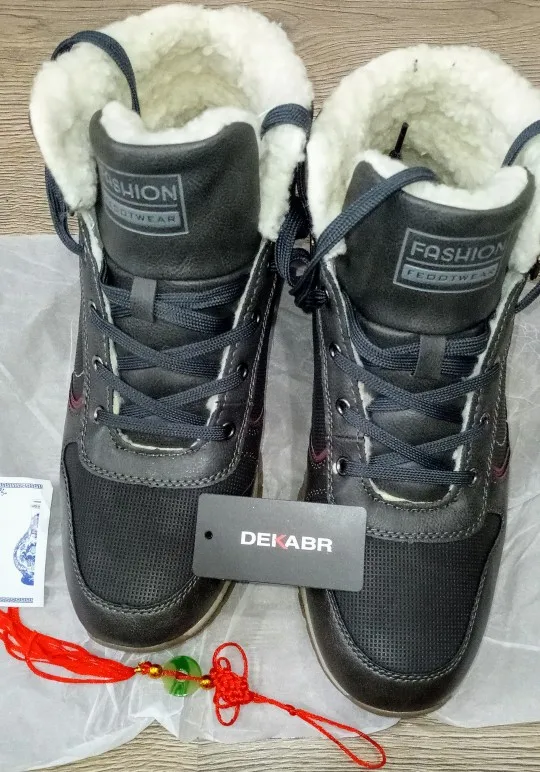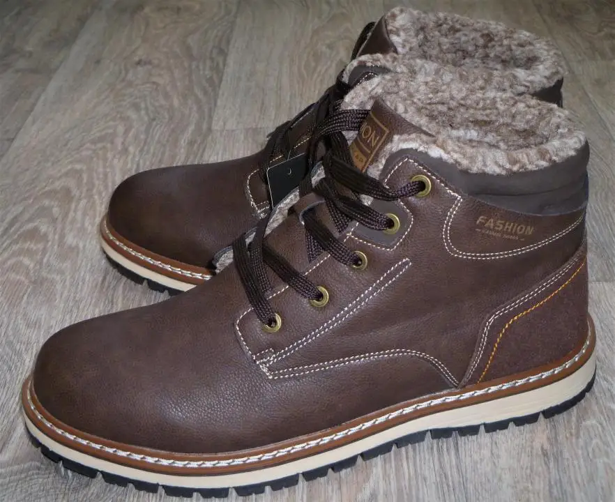 Ботинки заказывал в начале ноября, только пришли, хотя продавец отправил сразу. Ботинки не плохие, за эту цену, норма. Мех искуственный, кожа тоже. Посмотрим, как будут, в носке. На свой 42,заказал 44. В общем рекомендую, для повседневки сойдет. Продавцу спасибо. Похожу дополню отзыв.